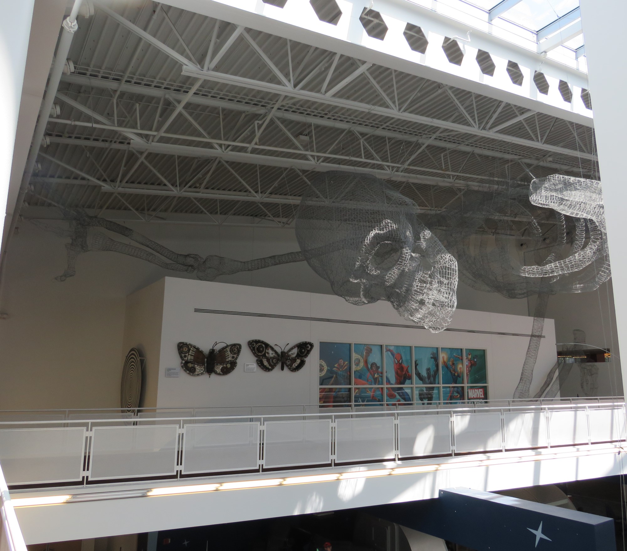 Dangling above it all in the museum’s heart is a giant mesh skeleton. Also, more butterflies and more Marvel cameos.