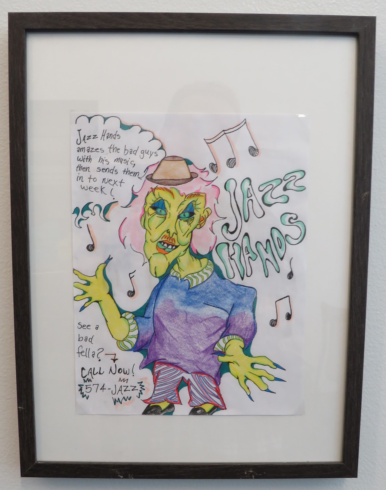 Speaking of superheroes: one hallway features artwork by local talents who created and visualized their own. Longtime MCC readers get why Jazz Hands spoke to us. Art by Tanya Fullerton.