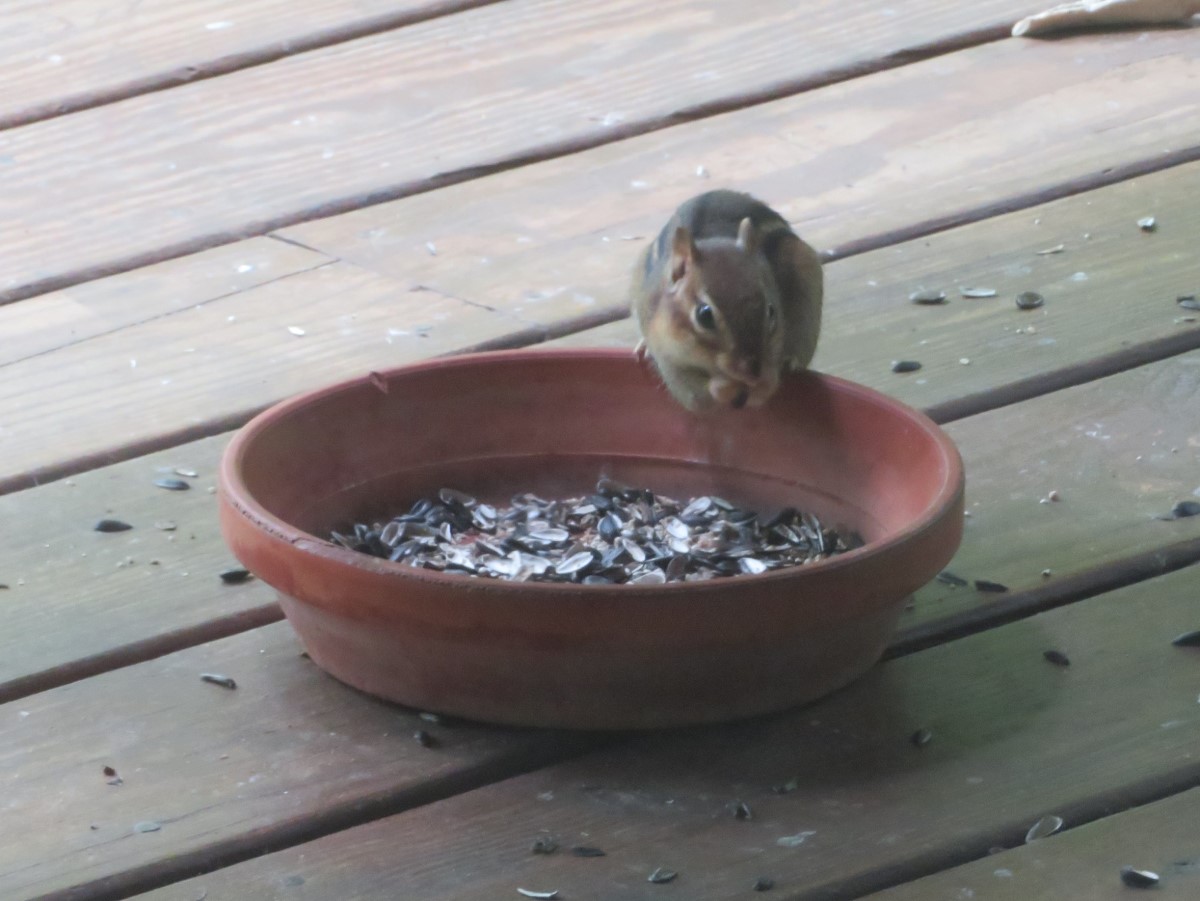 First we had to get the responsible part out of the way: the visiting of the family. We drove out to the sticks beyond the sticks 120 miles from home so our elders could fraternize. After the first few hours, Anne and I always excuse ourselves for a nature walk to unwind, stretch our legs, and leave some space for those who love swapping updates about obscure dead relatives and/or The Good Old Days. It’s a beautiful place in the autumn; in summer it has its occasional charms, by which I mean benign forest critters. We’ve been blessed so far not to encounter the more malignant ones.