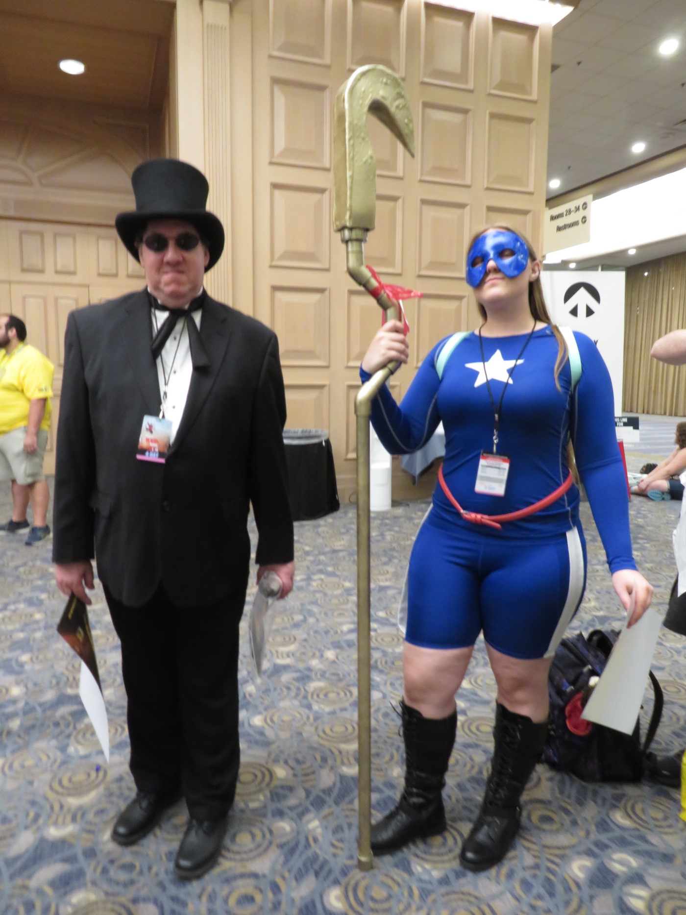 Before we attempt any real storytime, let’s do mandatory cosplay photos! Not a lot, mind you, but more than zero. MCC is regrettably no longer a repository for dozens of geek costume pics for every show we attend. As we get older and the attendees get younger, the represented characters skew harder toward newer shows and anime outside our specialty zones. Also as we get older, we have a little less fun photographing the same dozen characters we do recognize over and over and over and over and over again. Worst of all, whenever a show has a wide array of fascinating guests, we’re liable to spend more time in lines and panel rooms than we are on the show floor, which means fewer opportunities for chance encounters with talented costume designers and wearers. But we like to do what we can with the time and chances allotted.