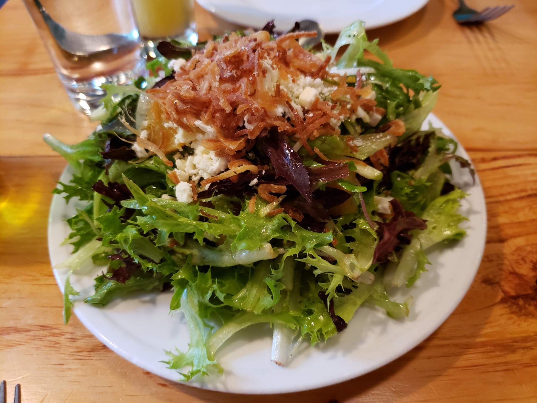 First up: beet salad with shaved fennel, apples, crispy shallots, feta and a truffle vinaigrette. Possibly my favorite dish of the meal because I turned 50 in May and I am old now.