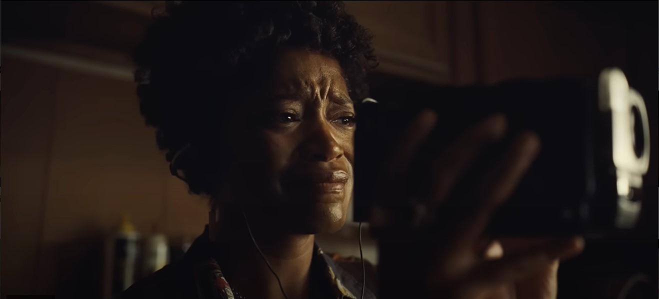 JJJ cannot speak or communicate, and is incapable of overexplaining itself, thus avoiding my single biggest annoyance with the final half-hour of Peele’s otherwise spectacular Us. After a few encounters with it, O.J. spots a pattern in its behaviors: JJJ remains out of sight as much as possible, but focuses its feeding most intently on any prey that it sees watching it (with whatever passes for its sight organs). Thus the key to victory (again, defined by Our Heroes as “getting it on camera without dying”) is to somehow watch it without watching it. Or, more ideally yet more riskily, properly watching it without it watching them watching it. The viewer is reminded of Medusa, the Weeping Angels, or Lisa Simpson’s anti-Whacking Day anthem. (“Just don’t look! “Just don’t look!”)