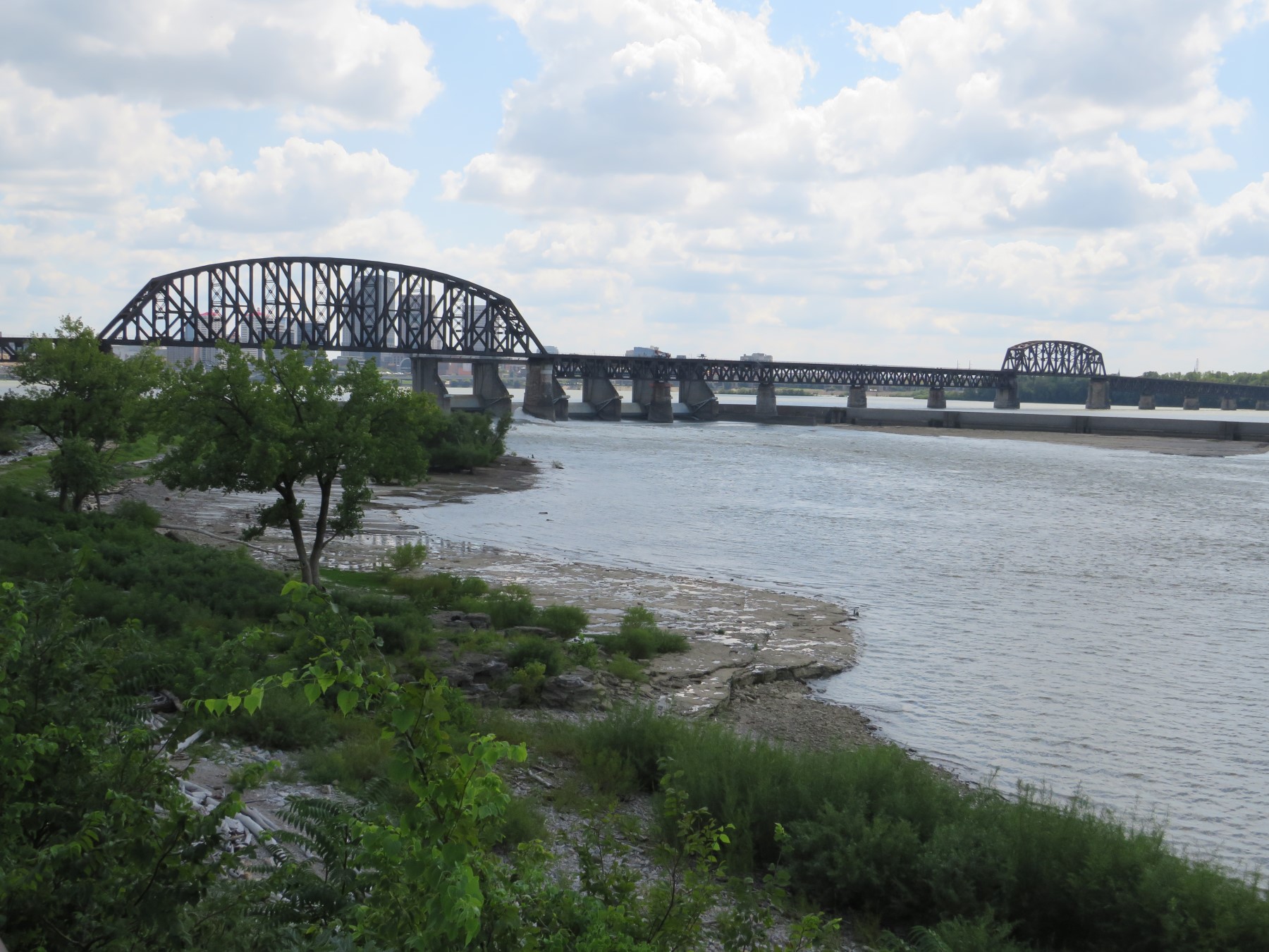 Behold the Ohio River, as well as the bridges of I-65 and other thoroughfares linking Indiana and Kentucky.