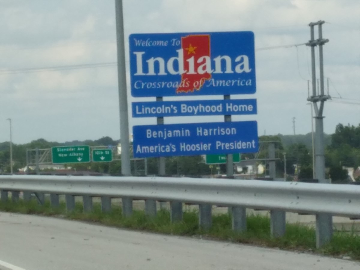 The alternative Indiana greeting if you take the smaller bridge from Louisville to Clarksville and avoid the I-65 toll bridge.