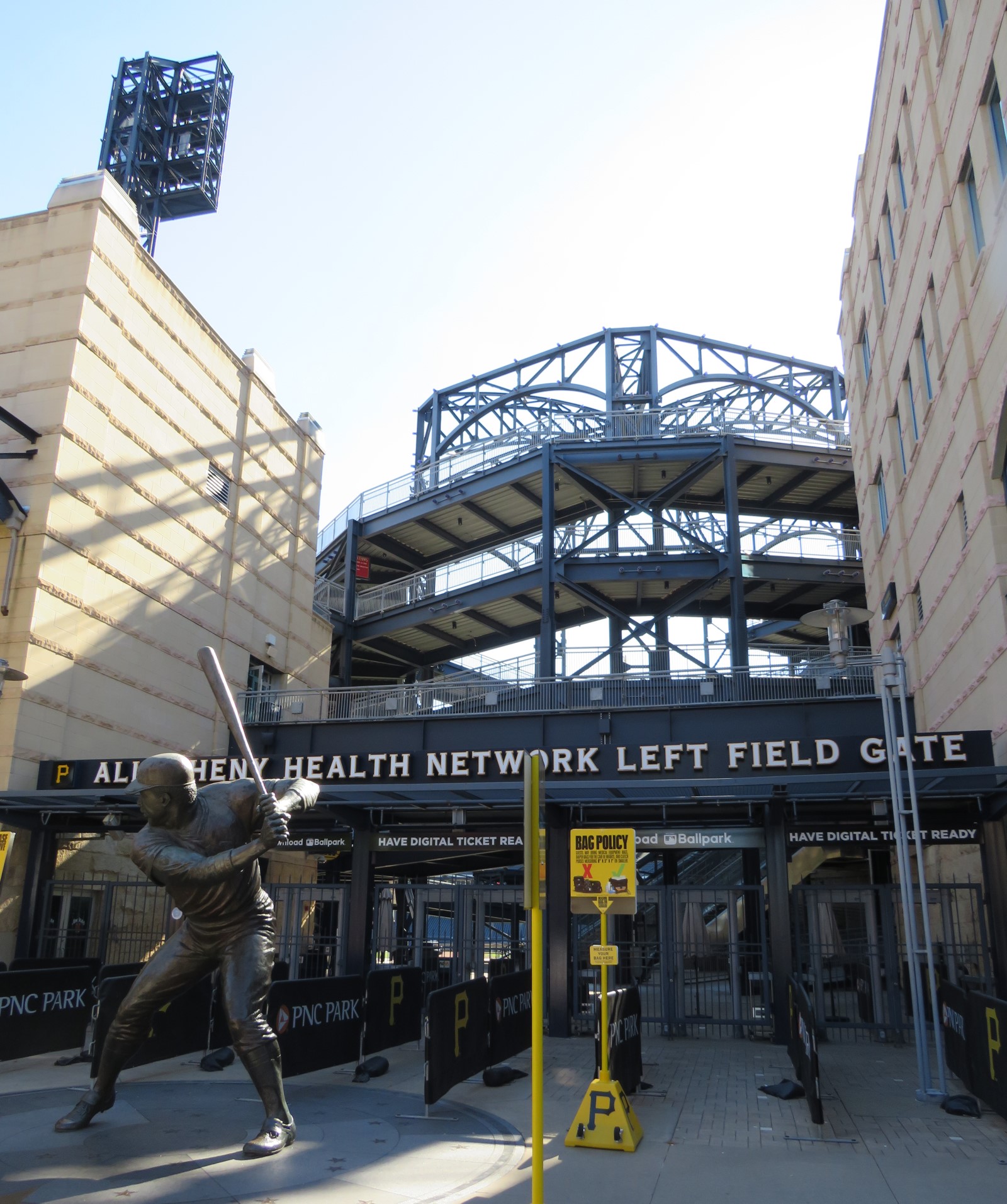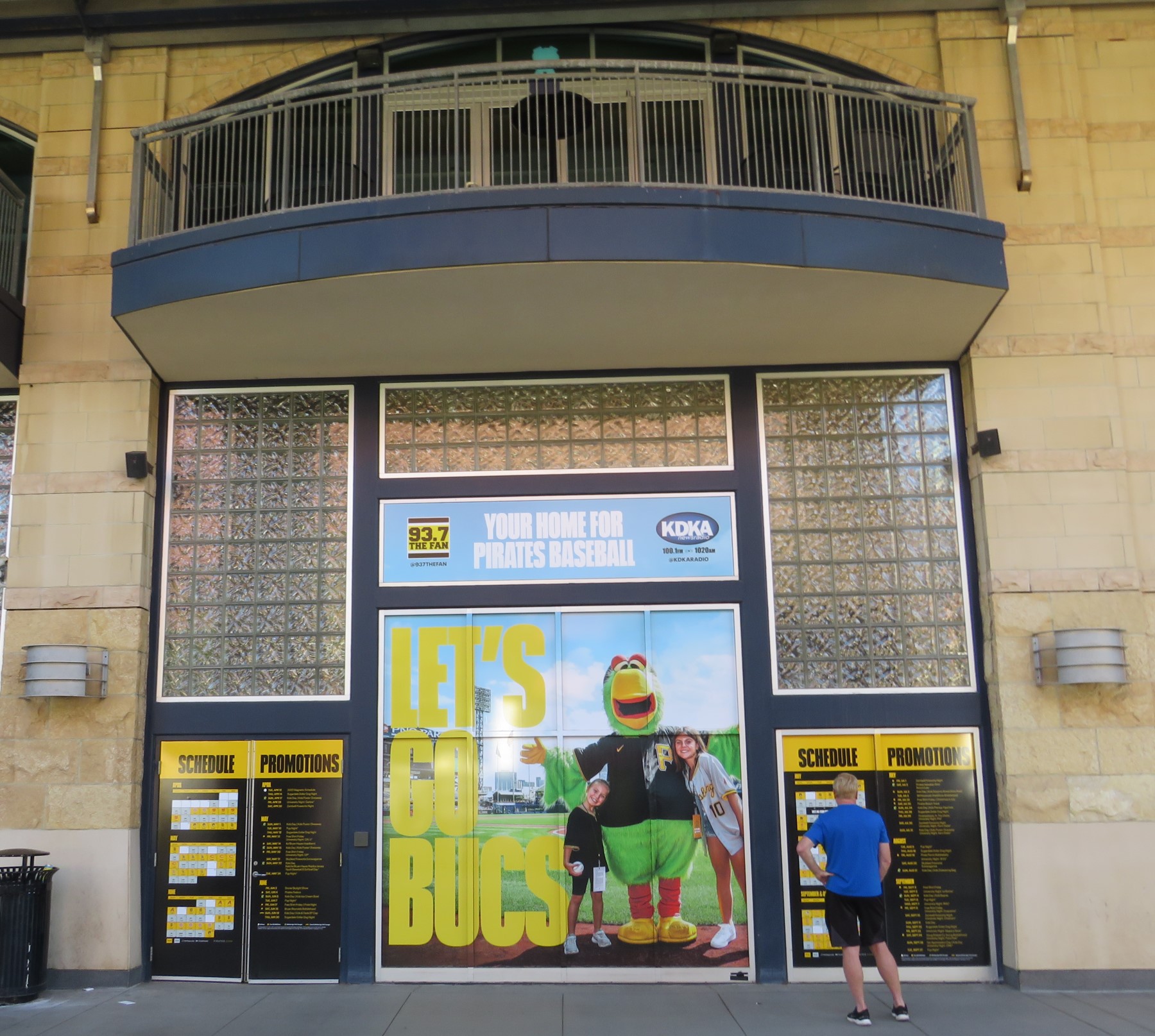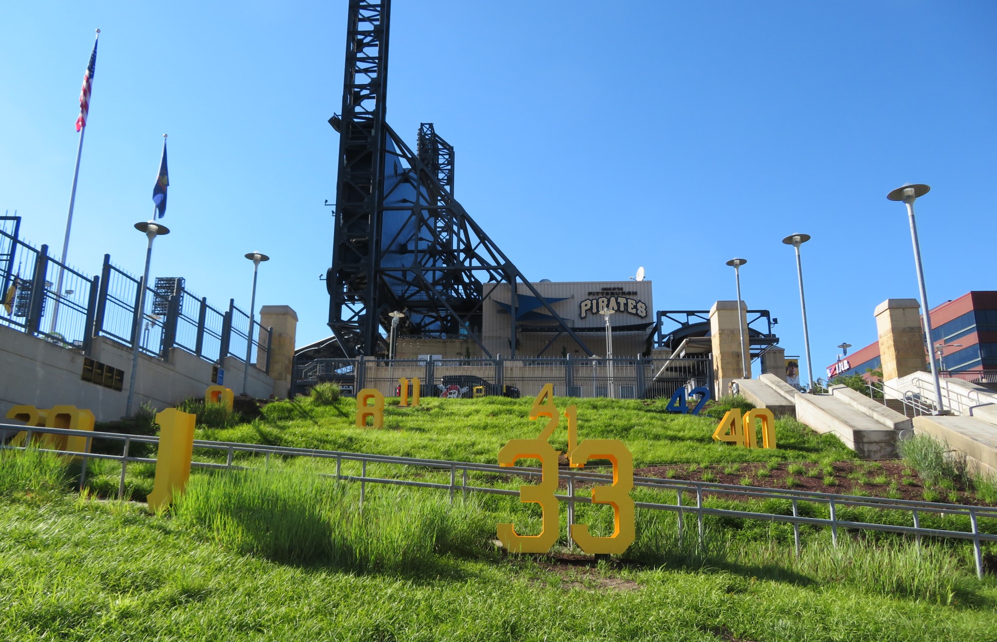This looks like a graveyard for the Pirates’ retired numbers. #33 is Honus Wagner; behind it is Clemente’s #21, and Stargell’s #8 is back and to the left.