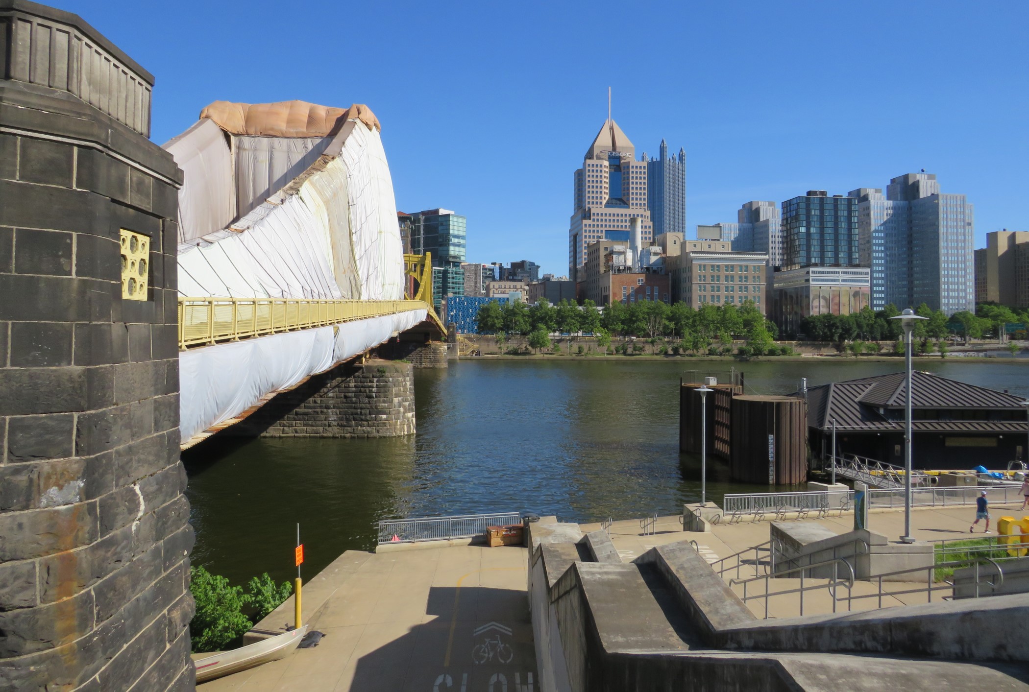 The other nearby businesses were a mix of parking garages and boring financial services. We walked past the entrance to PNC Park and on toward the shores of the Allegheny River to pass some time with scenery and tourism.