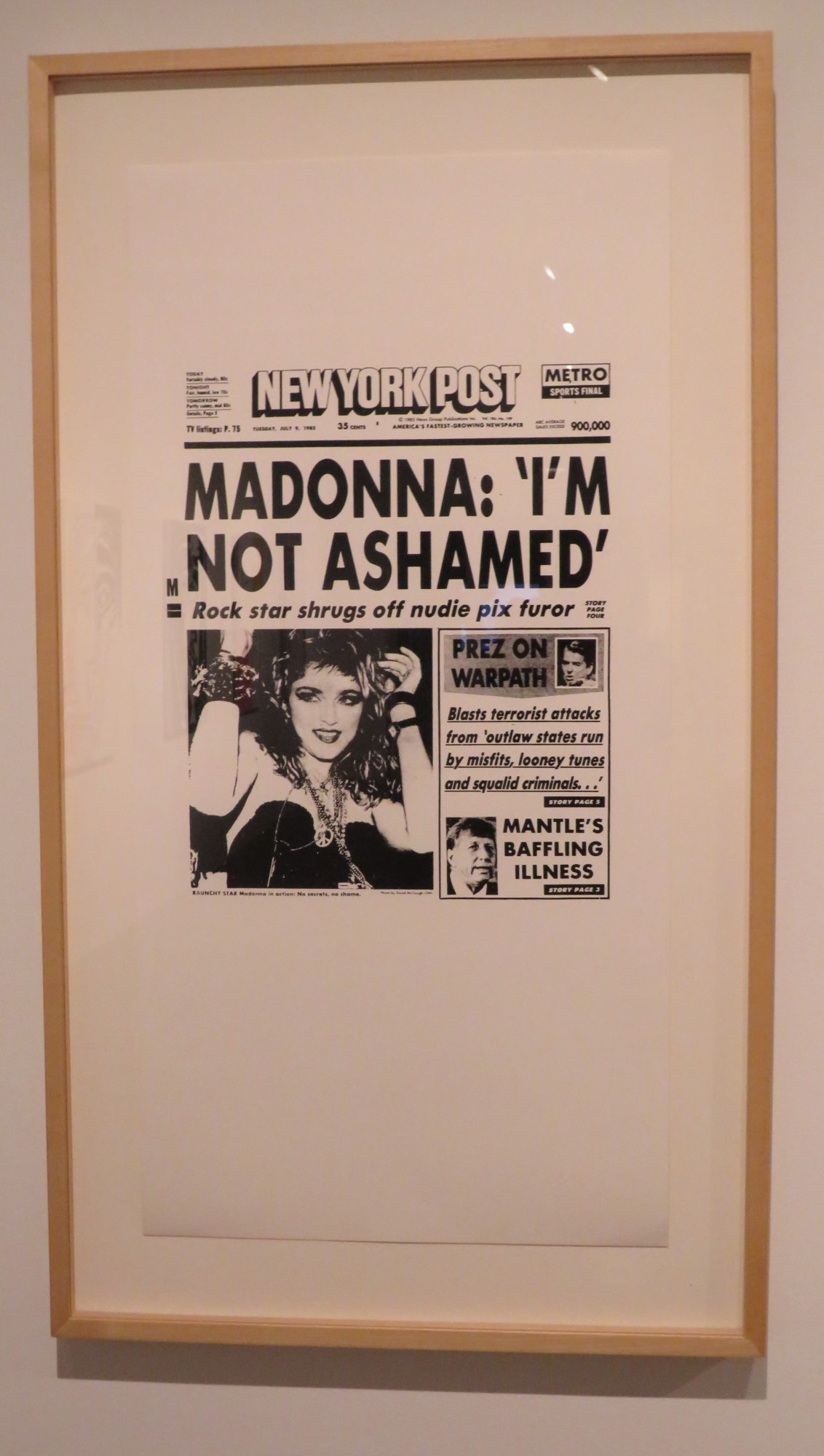 New York Post (Madonna: I’m Not Ashamed), 1985.