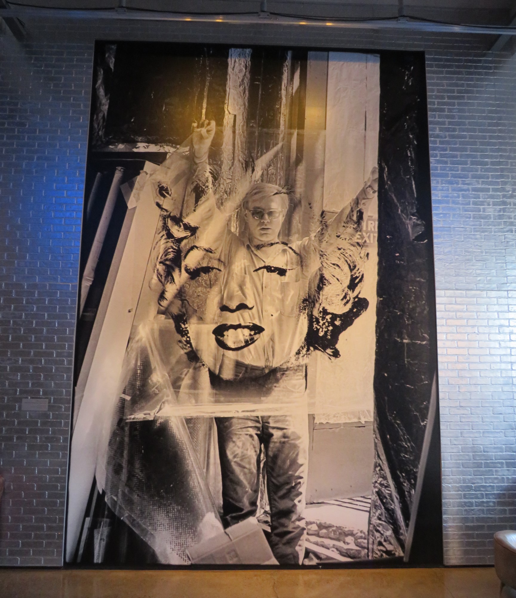 Lobby decor includes items such as the couch and pic in our lead photo, along with William John Kennedy’s 2010 tribute Untitled (Warhol Holding Marilyn Acetate II).