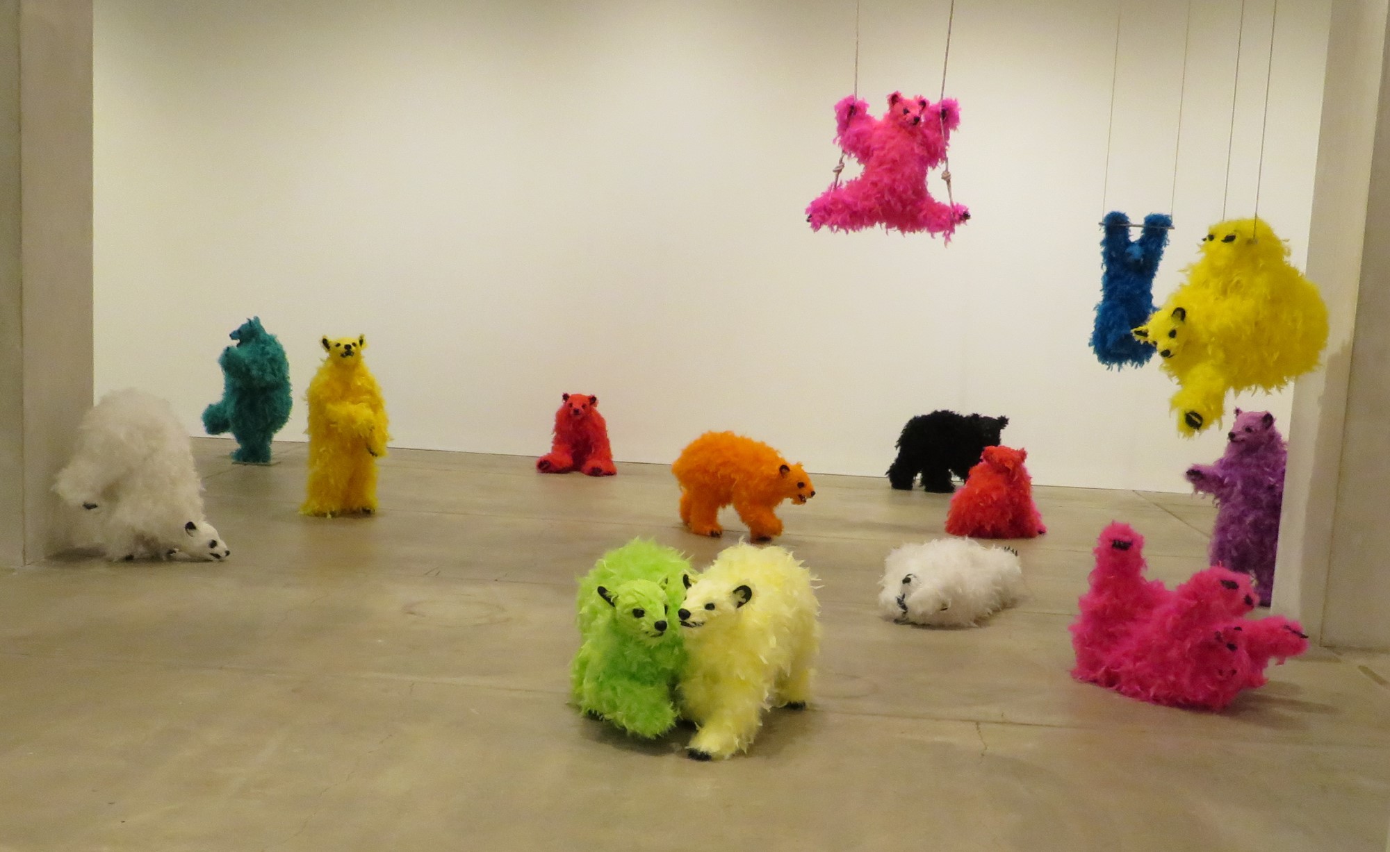 The first rooms beyond the front registers are devoted to temporary exhibits. Sometimes they cover Warhol-related topics; sometimes they platform artists adjacent to his fields of interest. All the following come from a gallery of works (whose stay ended August 15th) by Paola Pivi, an Italian artist who resides in Alaska. If you toured the rest of the museum before dwelling on her gallery, one shared connection between Pivi and Warhol was obvious.