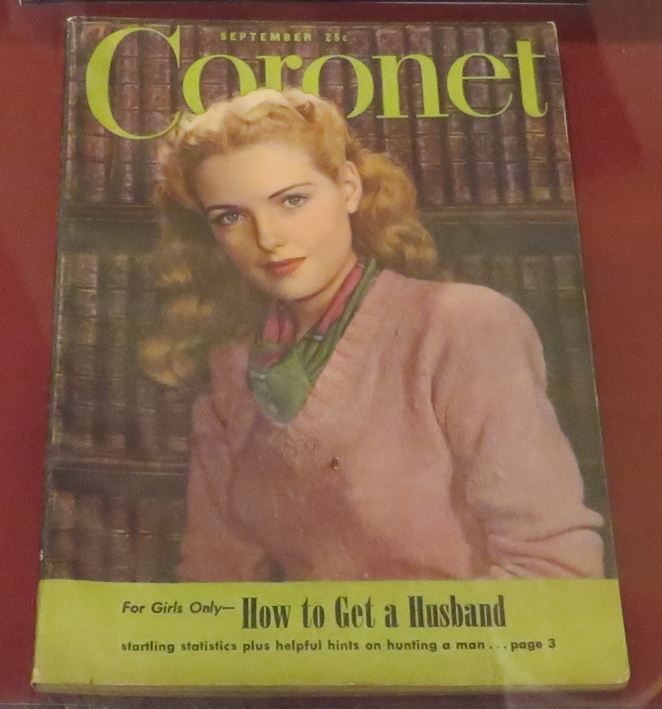 Coronet Magazine offers man-huntin’ tips to women only and welcomes guest cover model Virginia Patton, who played George’s sister-in-law Ruth.