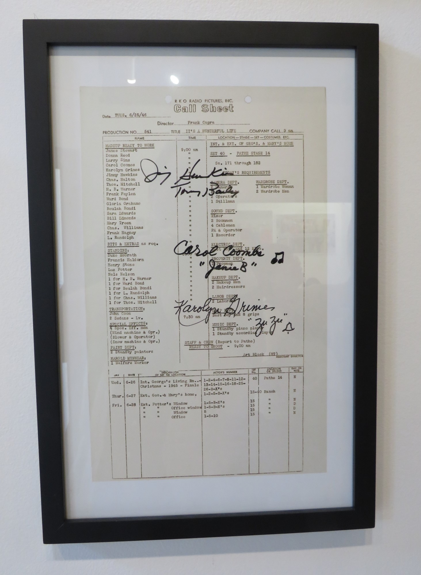 The ultimate Bailey Kids crossover artifact: an original Wonderful Life call sheet autographed by Grimes, Coombs and Hawkins.