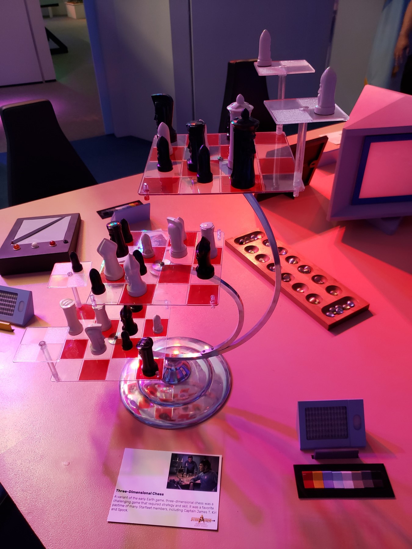 A 3-D chess set in the briefing room, where neither of us got a wide shot.