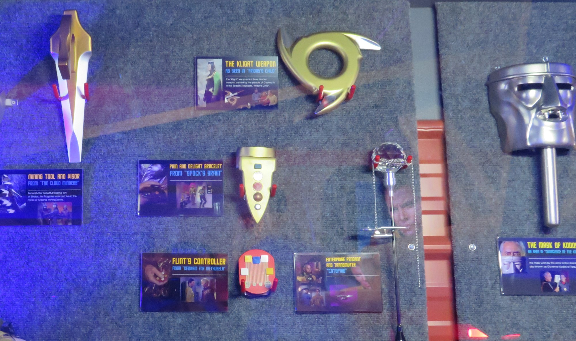 Even before the tour, the front lobby is a small in museum itself, packed with Trek wonders — some merch you can buy, some vintage merch beyond your price range, and a selection of genuine props and costumes from the show.