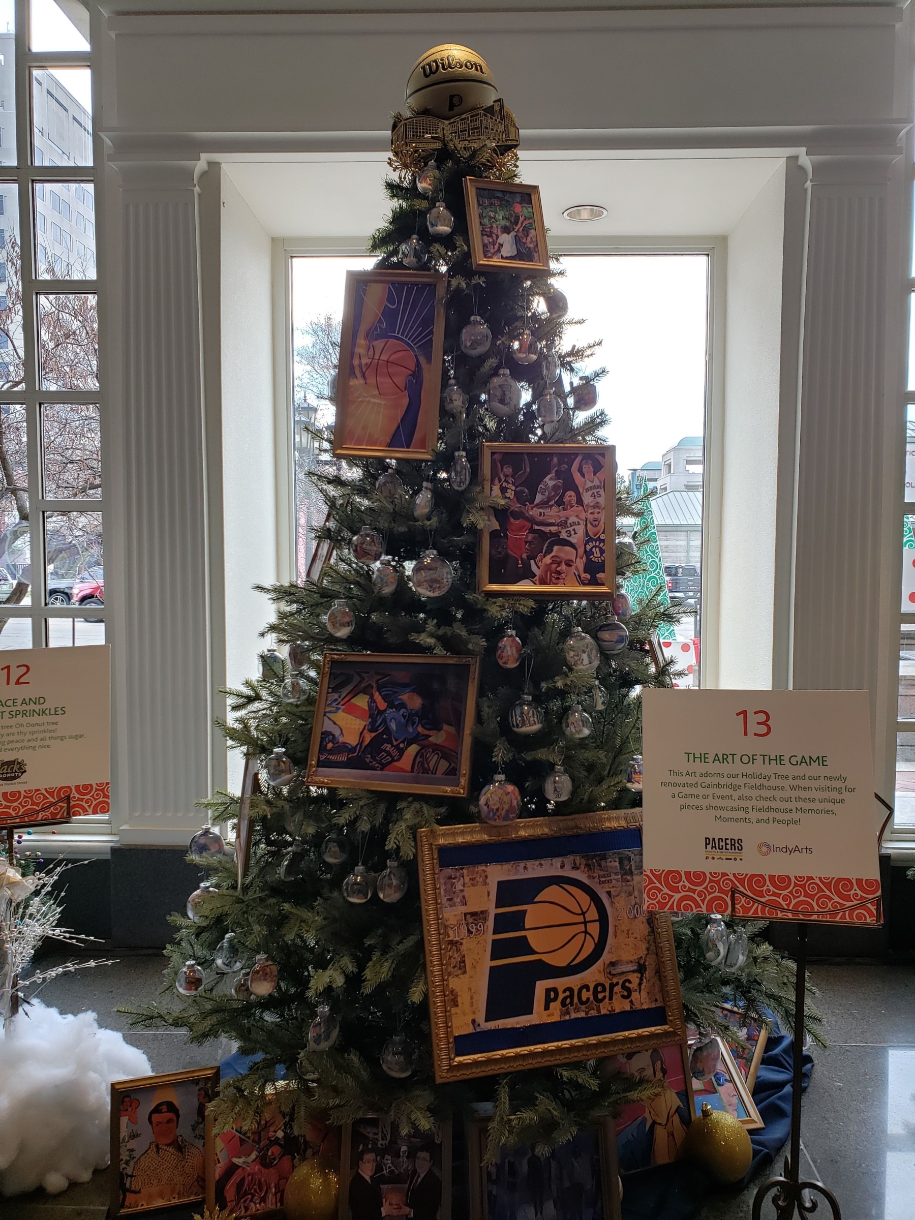 Every year the Indiana Historical Society in downtown Indianapolis hosts a special Christmas exhibit called the Festival of Trees, for which dozens of local businesses and charities festoon a tree or tree-shaped object with decorations befitting their interests and colors. Anne and I have been meaning to check out the Historical Society (with or without a holiday-based excuse) but kept failing to make time. A few days after Thanksgiving this year, my coworkers and I decided to make that time and sauntered over there on our lunch break. Anne doesn’t work downtown or at my company and therefore sadly wasn’t included in our field trip, but I took photos to share with her and with You, The Viewers at Home.
