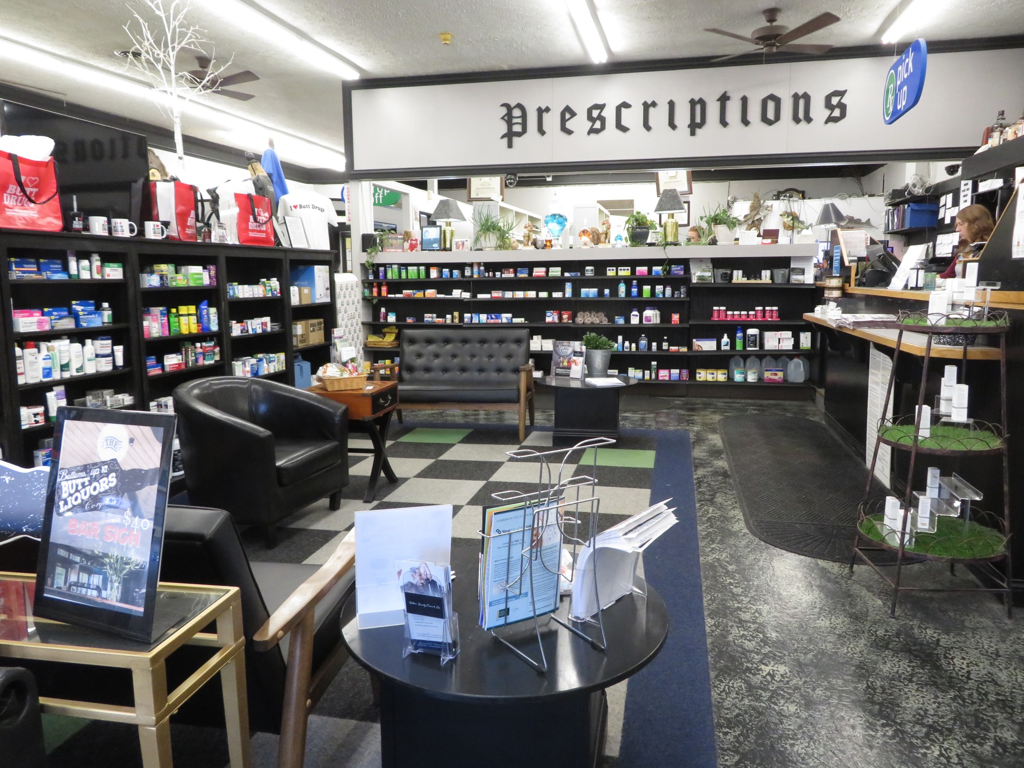 Every Indiana town above a certain size has large corporations trying to muscle in on their homegrown businesses and industries. Corydon has CVS, Walgreens, and Walmart servicing anyone’s prescription needs, same as we do here in the big city. Their residents have one convenient pill-vending option we don’t: anytime they want, they can go hit Butt Drugs.