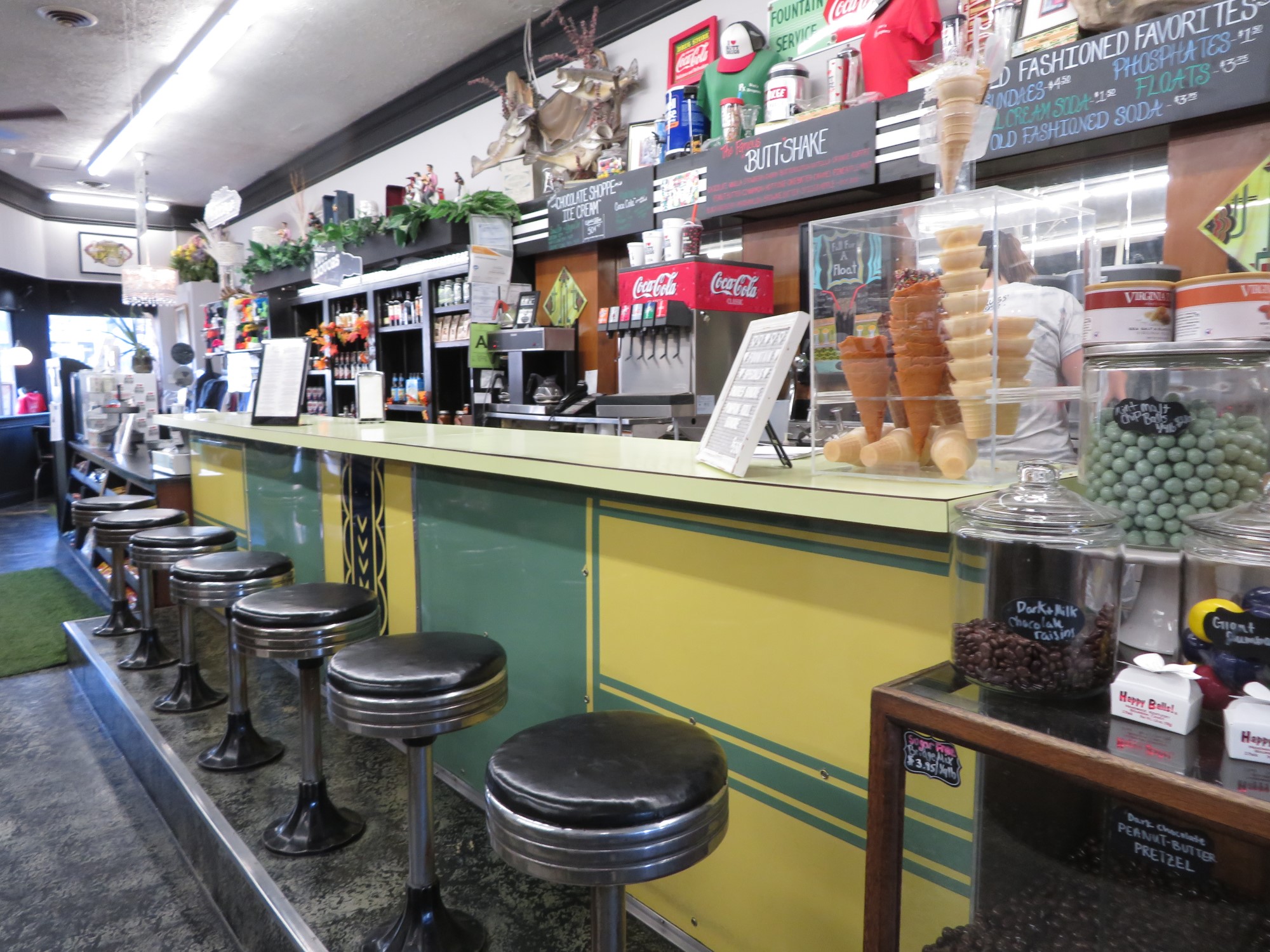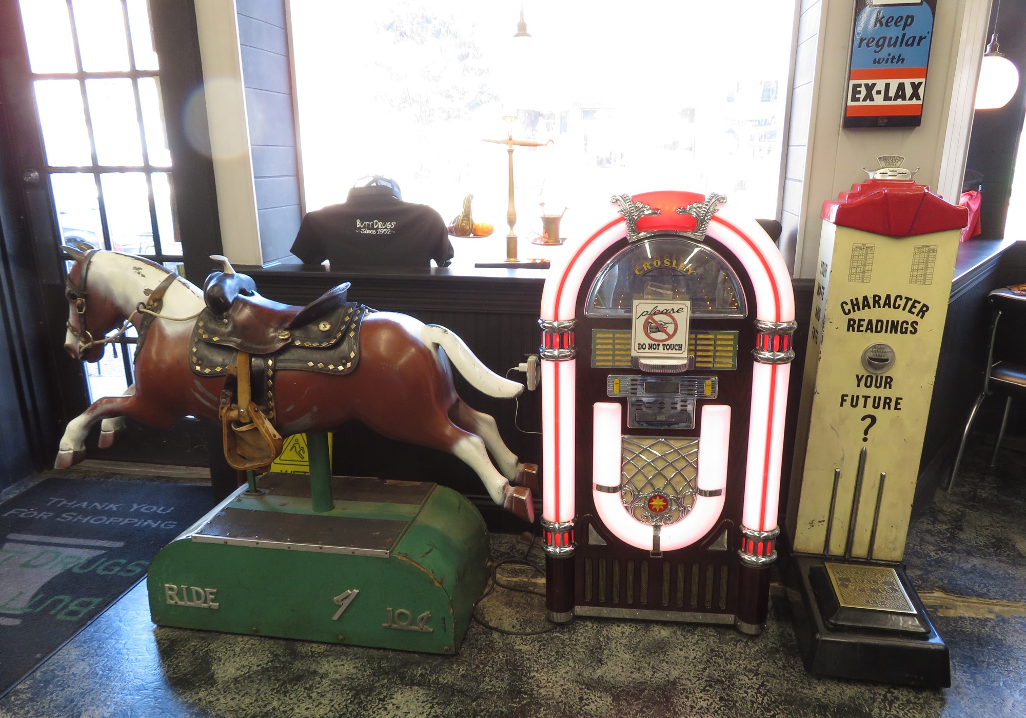 Seriously, though, there’s a real, working pharmacy on the premises. Note the Easter-egg ad for their line of specialty alcohols.