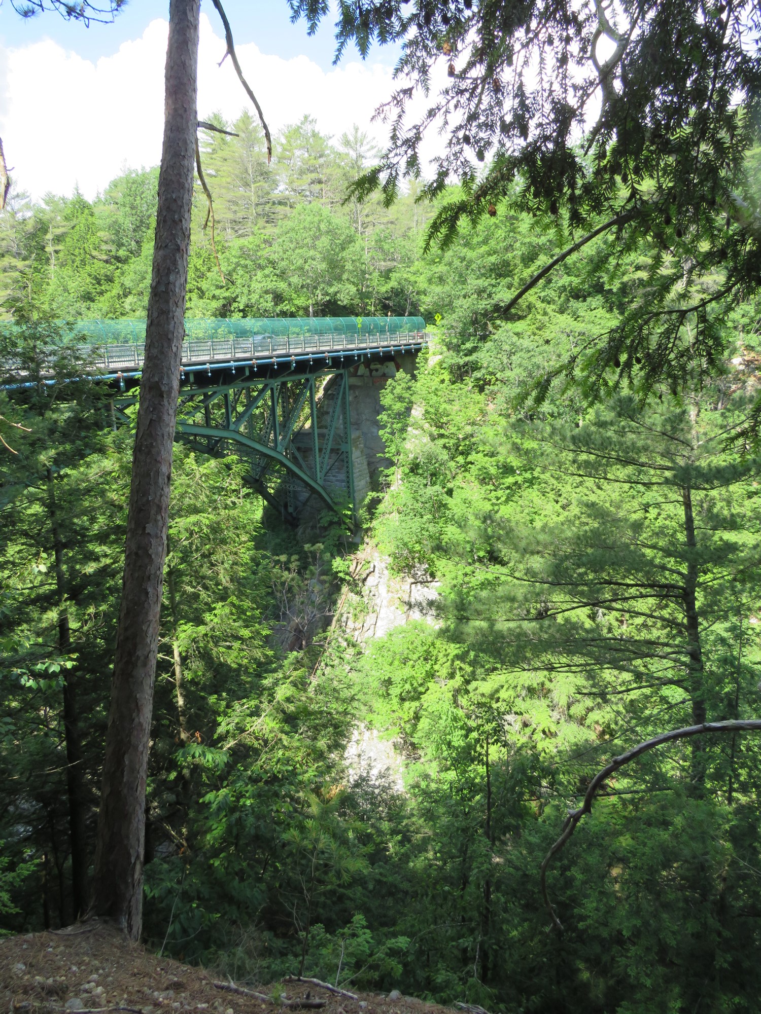 Quechee Gorge north of the bridge. Annoyingly, it curves to the northeast so you can’t see the waterfall.