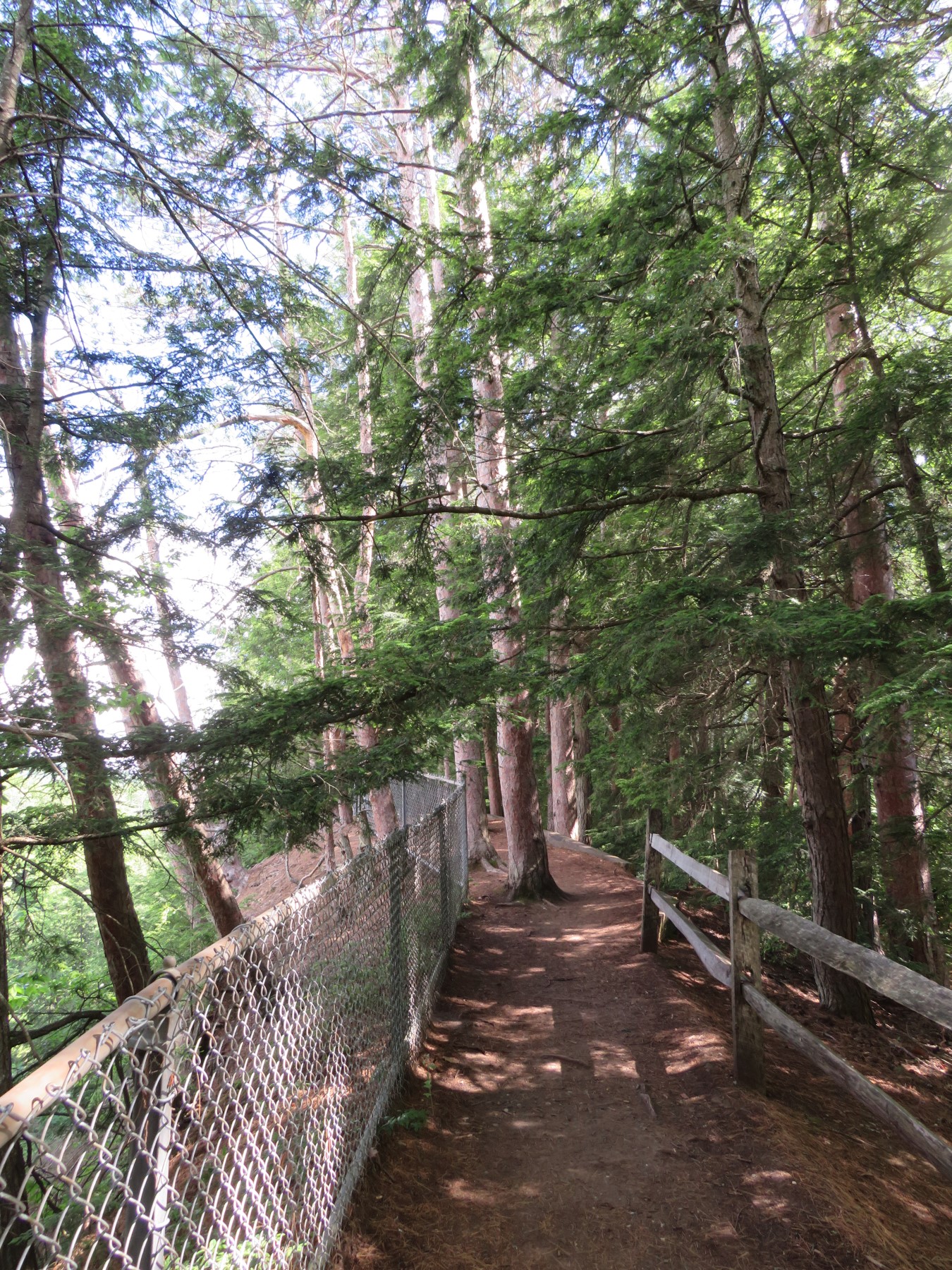 A chain-link safety fence on one side held us back from certain doom. A wooden fence on our other side kept us from assuming the whole forest was ours for the taking.