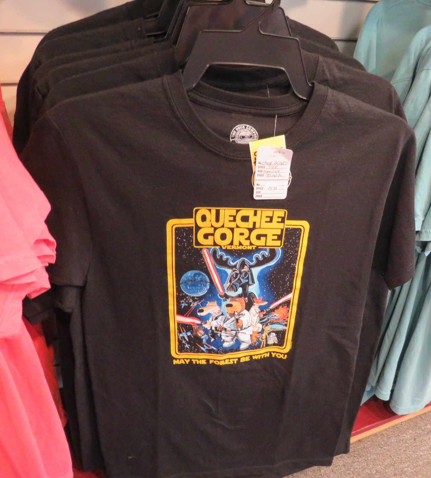 Out in the parking lot, we exchanged friendly waves with the biker clan as they mounted up and rolled out, and we crossed the street to our car. It might’ve been nice to wander down toward the gorge’s south end, but the free shower sample from the heavens concerned us. We didn’t want to get all the way out to the farthest end of the path only to get deluged. We considered ourselves fully content with our Vermont state park experience and moved on to our next destination.