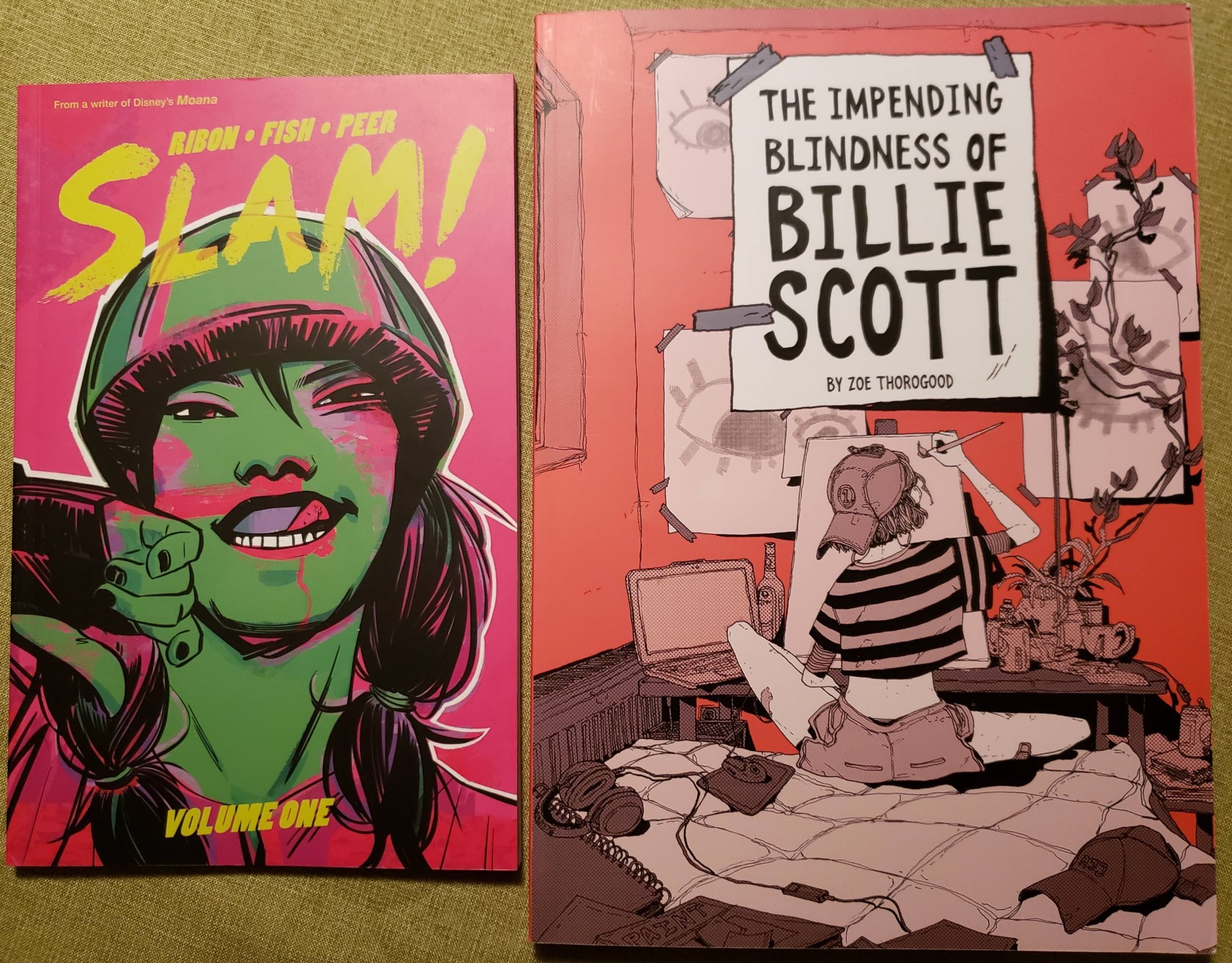 34. Pamela Ribon, Veronica Fish, Brittany Peer and Laura Langston, Slam!, Vol. 1 (2017). I may have flipped the TV channel to the original Rollerball on some childhood weekend afternoon, but the wild world of roller derby is otherwise a faraway exotic land to me. I’ve seen more mosh pits in my life than roller derbies, though the latter looks way more organized and safer. Indianapolis has its own team, albeit currently in pandemic hibernation, who used to do public appearances at places we went, where I got to learn a few of the game’s surface details, like the skaters’ punny names.