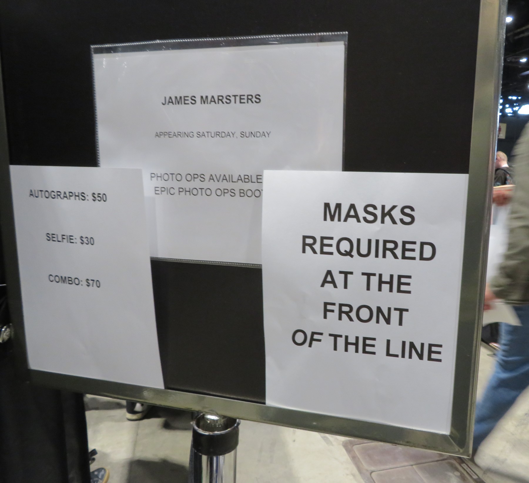 Fellow star James Marsters, whom we previously met, was the only actor we’re aware of who required everyone to wear masks when they reached his autograph table.