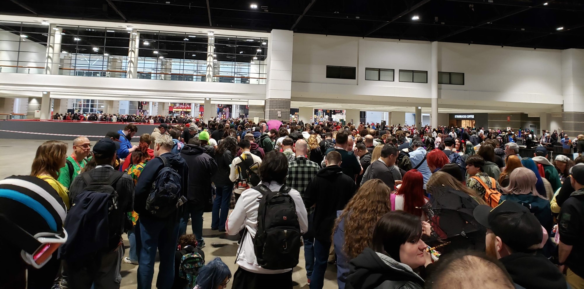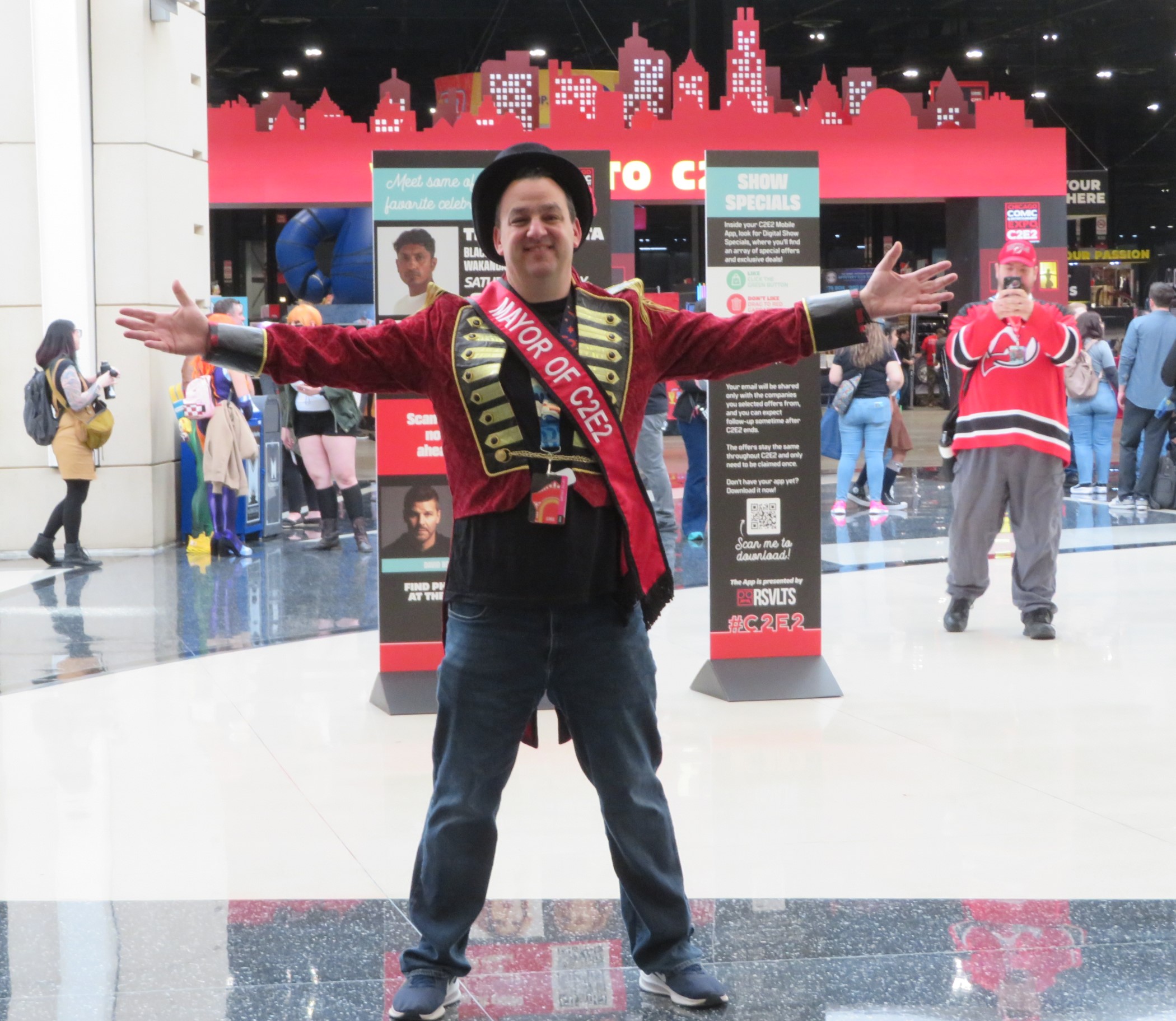 A few minutes before 10 a.m., those of us at the fronts of the various line sections were treated to the presence of a man billing himself as The Mayor of C2E2. His royal duties included mustering up enthusiasm for the imminent festivities, conducting a quick opening ceremony, and providing a symbolic figurehead to encapsulate all our hopes and dreams, or to blame later if everything went so horridly wrong that stampeding and bloodshed would ensue. Luckily for him, we were never given reason to call for his head on a pike.