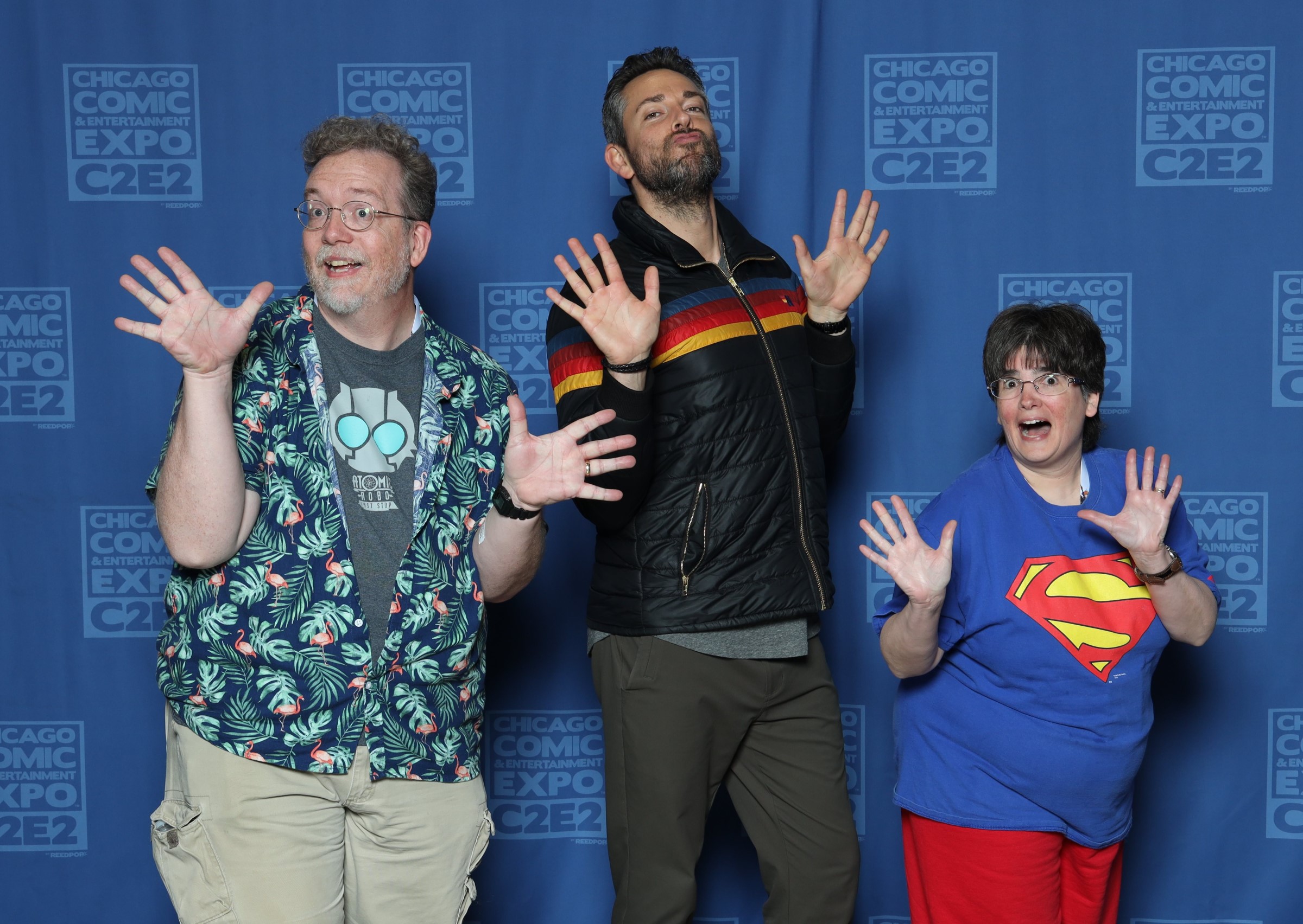 My wife Anne and I just got home from the latest edition of the Chicago Comic and Entertainment Exposition (“C2E2″), a three-day extravaganza of comic books, actors, creators, toys, props, publishers, freebies, Funko Pops, anime we don’t recognize, and walking and walking and walking and walking. After its 2010 inception, we attended every year from 2011 to 2019, then took a break due partly to the pandemic and partly due to guest lists outside our circles of interest. This year’s strong lineup lured us back in, much to our delight…