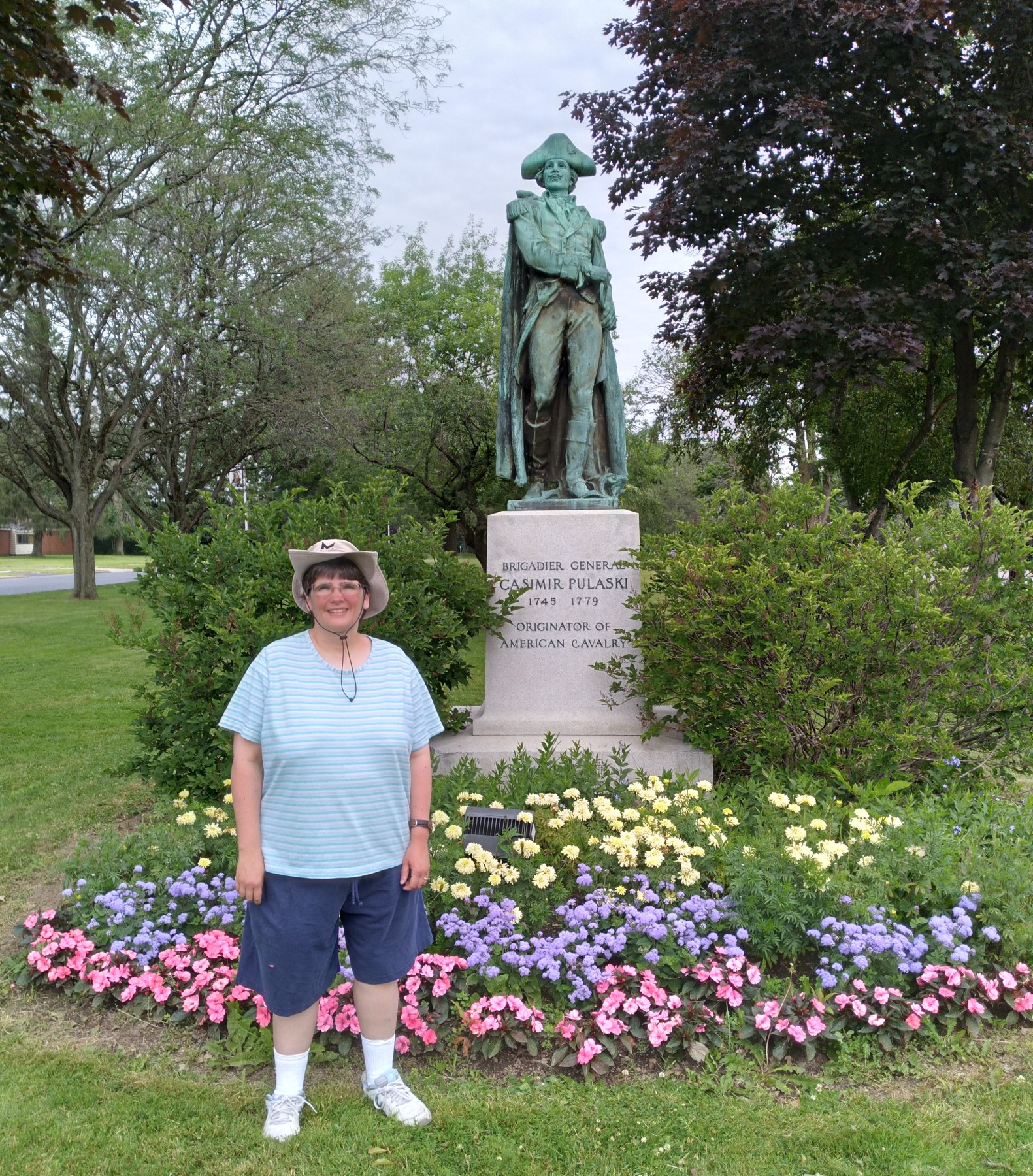 Pulaski’s statue is located at a fairly busy highway intersection. To access it, we parked a few blocks down at a recreational complex surrounded by fifty acres’ worth of three contiguous parks. No one seemed to mind as we parked in the complex’s lot alongside numerous residents who use the place for their daily exercise regimens, then walked away to go see the statue. The more we walked, the more statues we found in the vicinity of Memorial Highway, the larger of the two roads at that intersection. So it wasn’t just a randomly catchy street name.