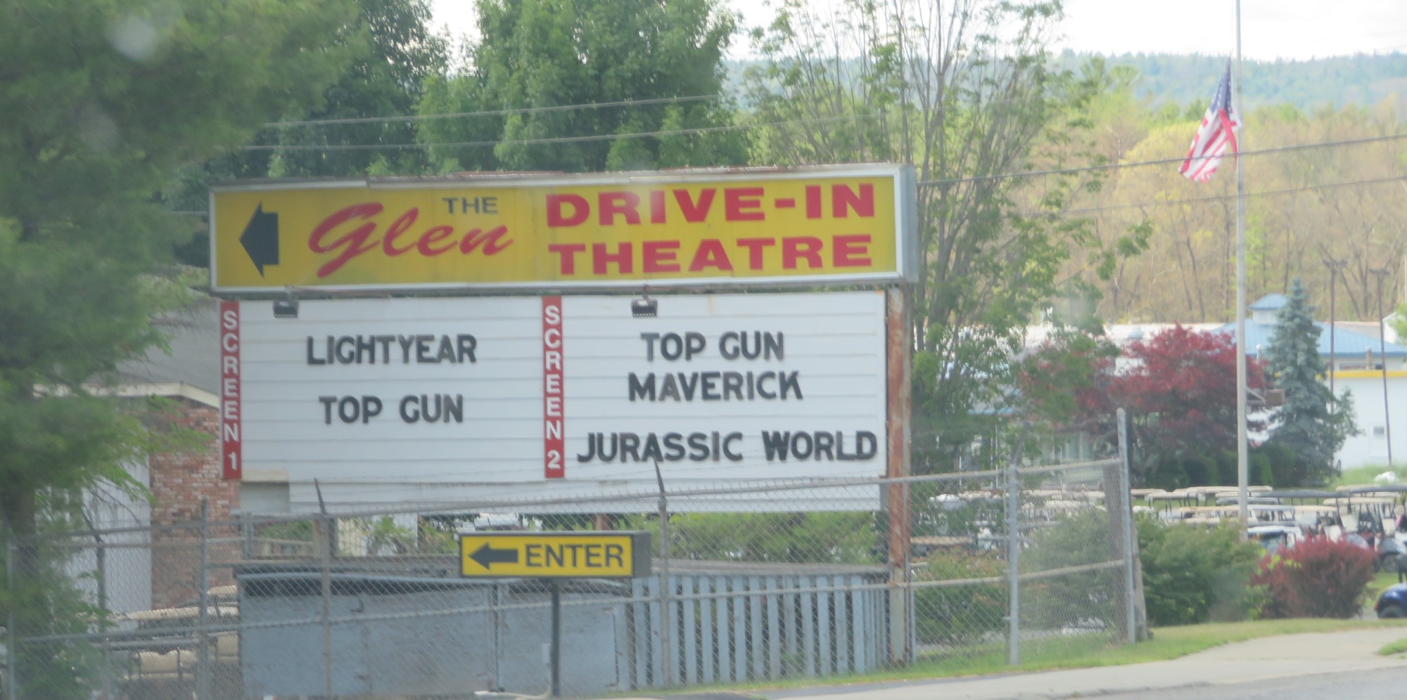 Other entertainment in the area included a drive-in showing the same new blockbusters as the theaters we’d passed in Finger Lakes and Montpelier, plus a repertory showing added to the mix.