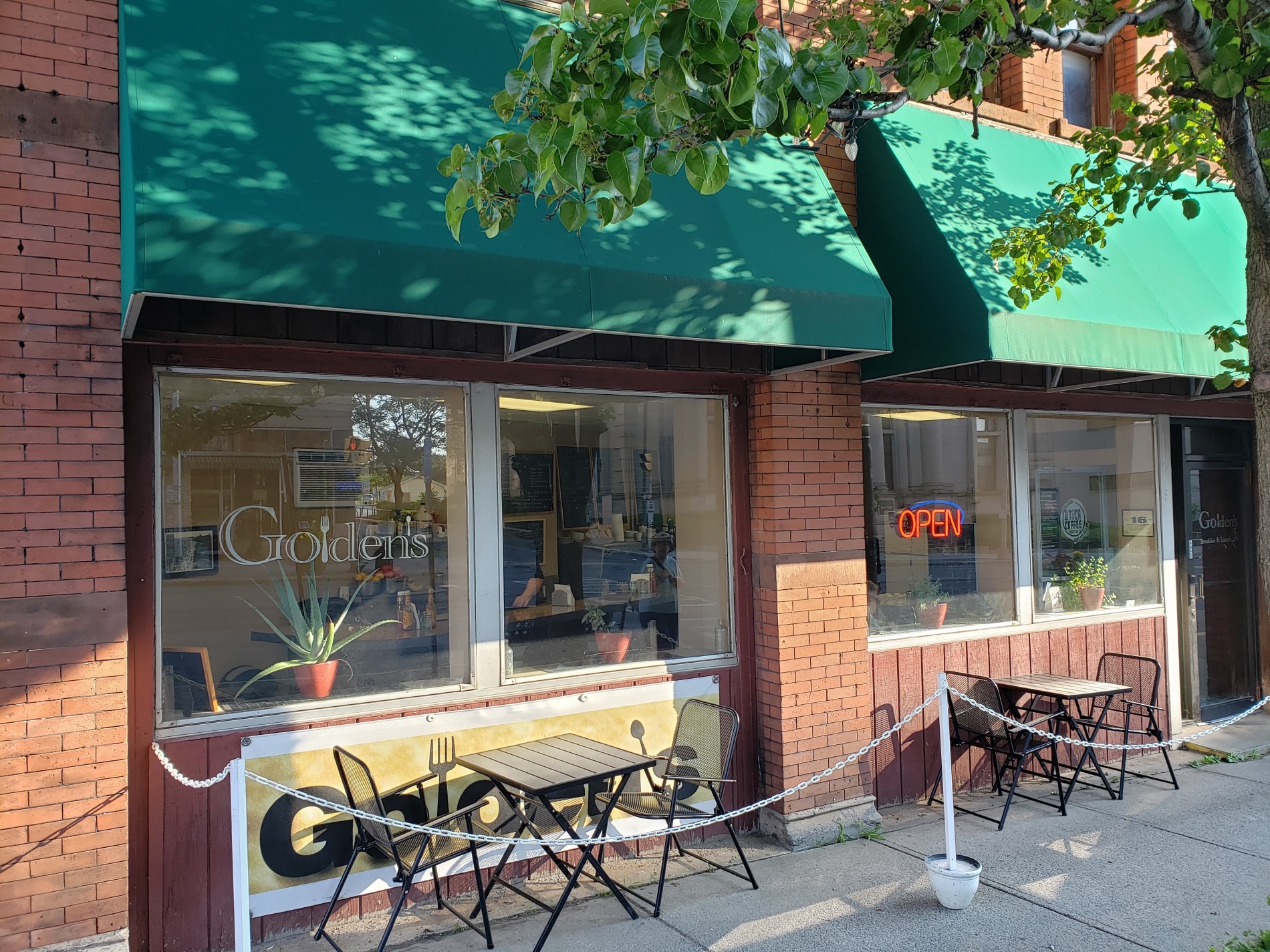 We’d chosen our breakfast joint weeks in advance during our pre-vacation prep. Across the street from the bank was a solid blue-collar diner called Golden’s. As you might imagine, the name really spoke to us. One owner/chef, one table, and a counter lined with stools — that’s all we found and all we needed. Three other lonesome customers sat apart around the place, no doubt before their workdays would begin. On TV, the local news reported about a film crew that had hung around in Utica the previous night to shoot skateboarding footage for some project.