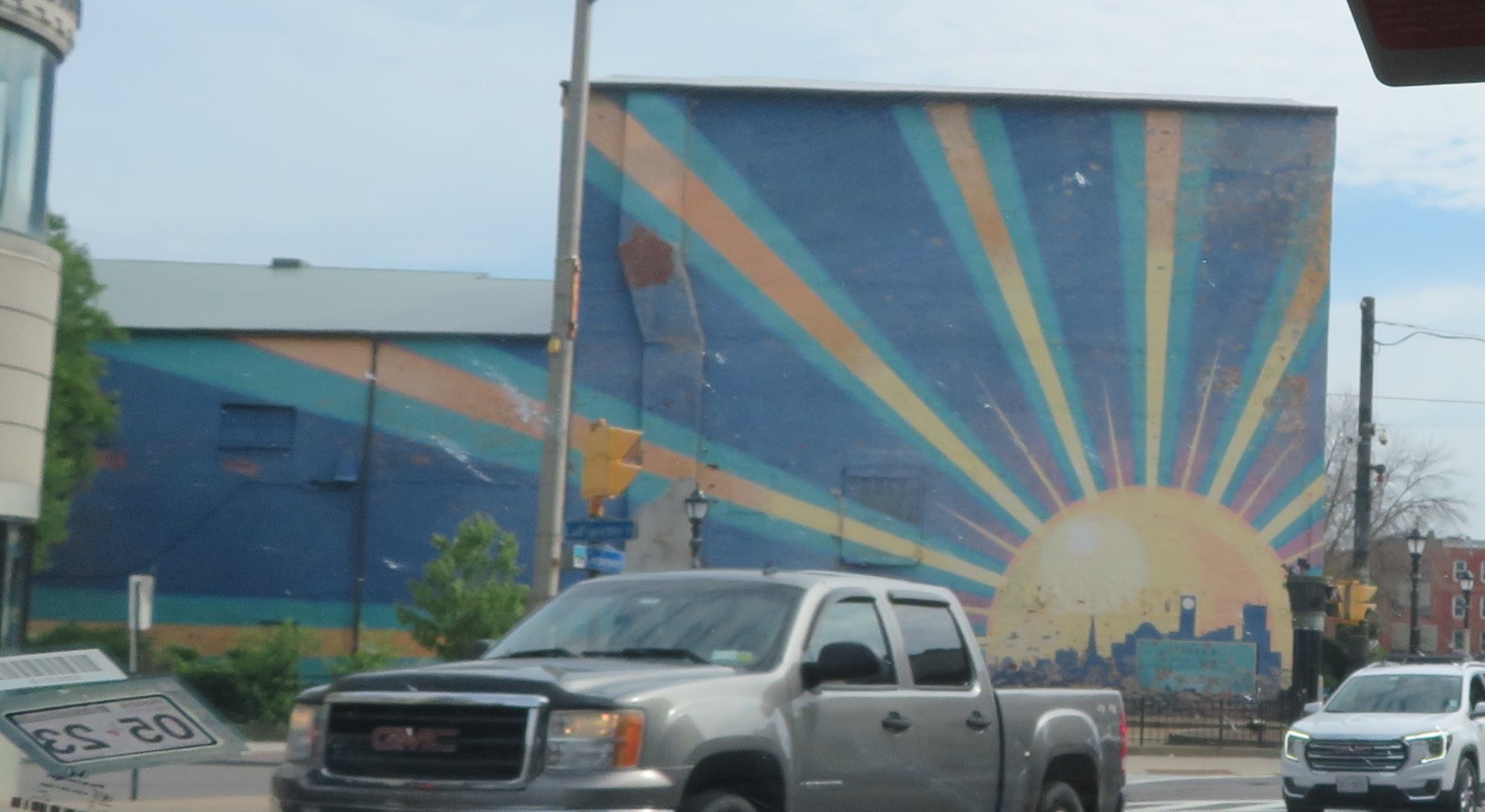 The Utica Sunburst Mural by by Charles “Corky” Goss and Chip Miller had been around since 1998, but due to structural issues its takedown commenced on April 21, 2023 (the weekend before I’m writing this), for repair and replacement by a new mural TBD. We caught it just in time.