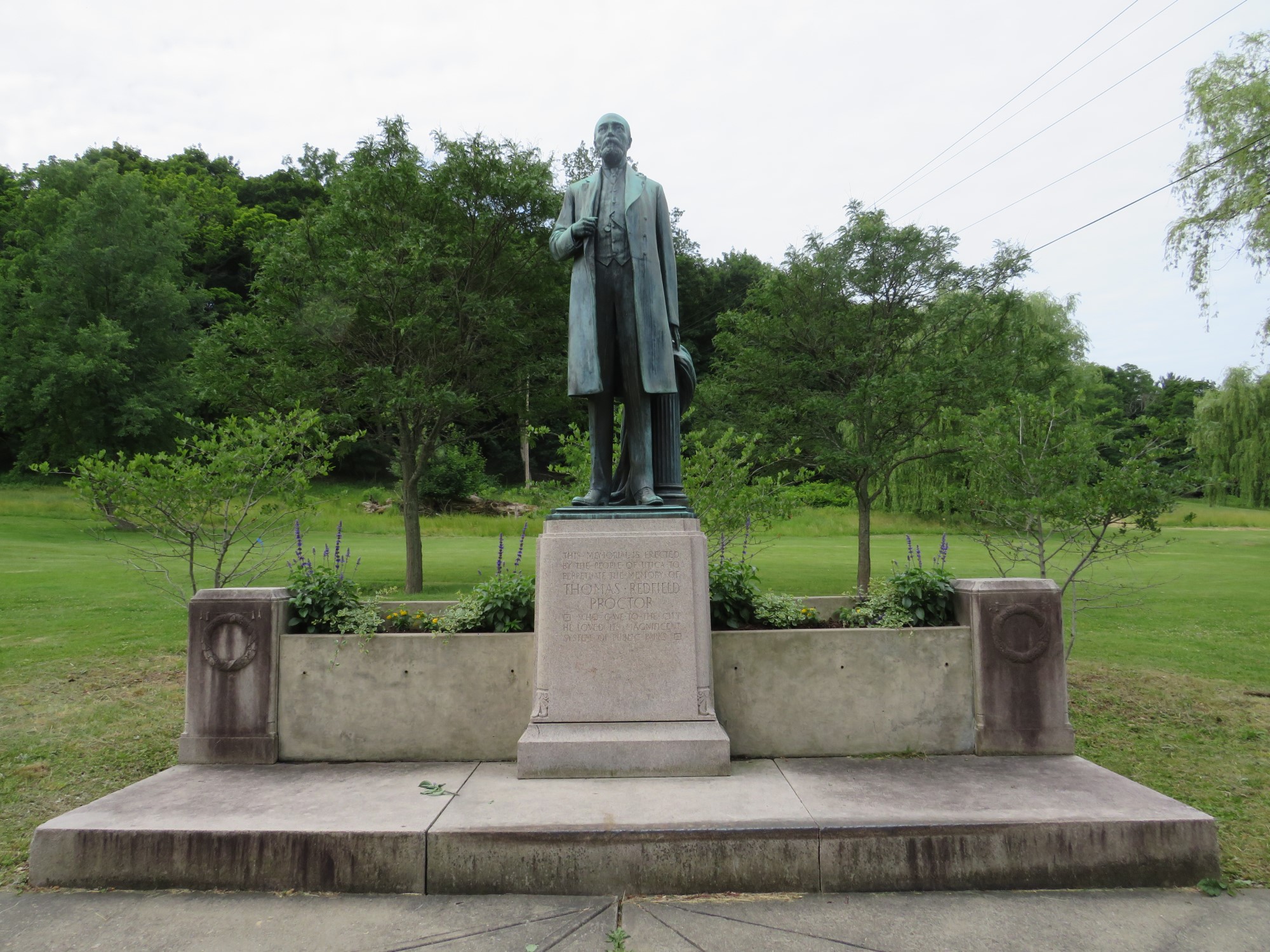 From the hands of George Thomas Brewster, a 1921 salute to Thomas Redfield Proctor — a banker, hotelier, and philanthropist whose land acquisitions and donations made Utica’s pretty parks possible.
