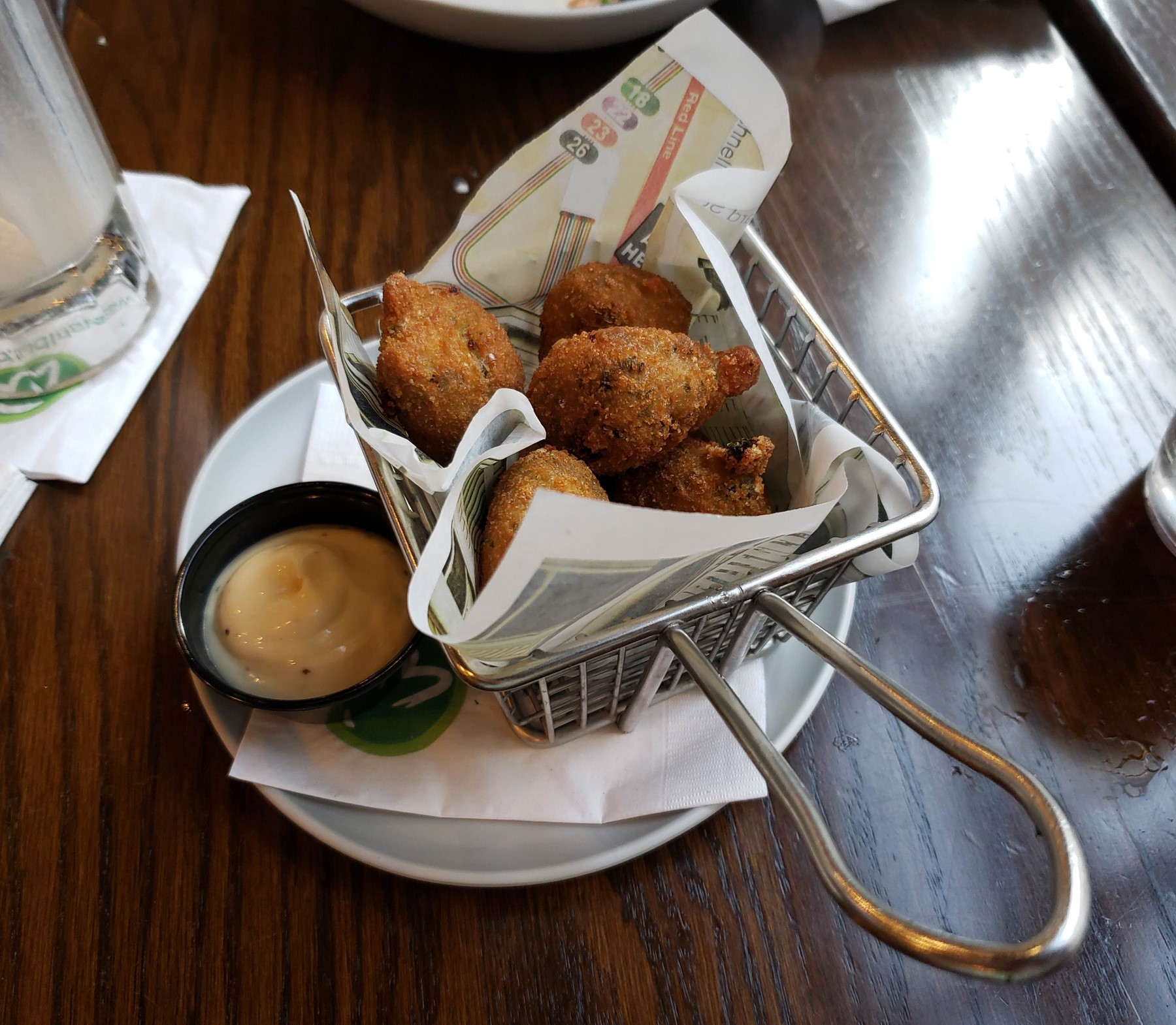 Dessert was an order of Spinach and Parmesan Wahlbites, served with a honey garlic sauce.