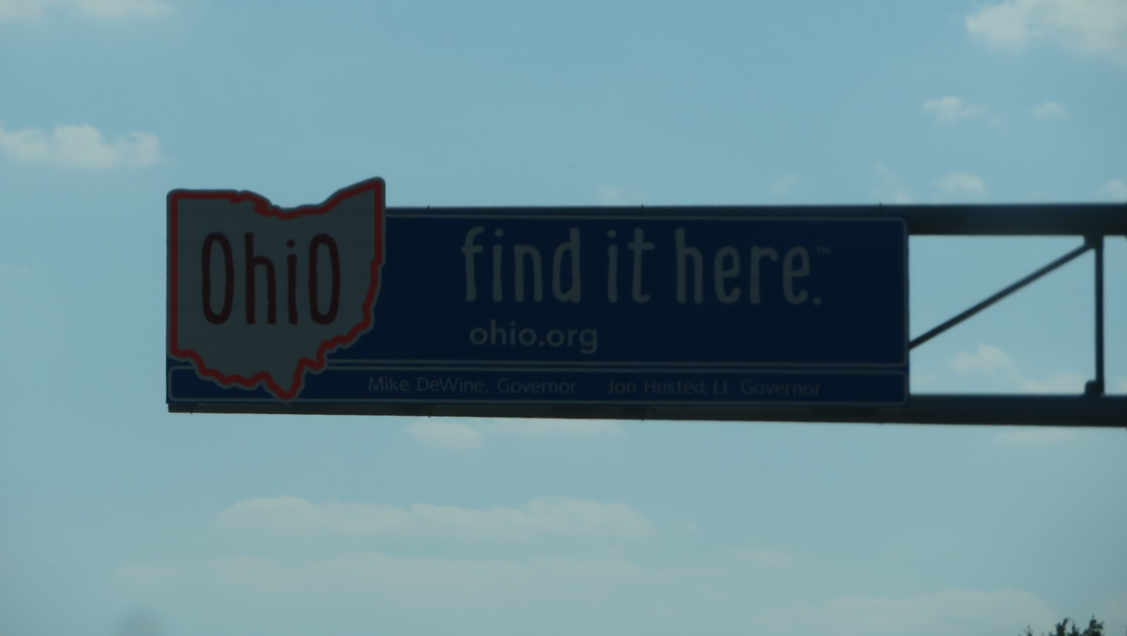 An overhead "Welcome to Ohio" sign.