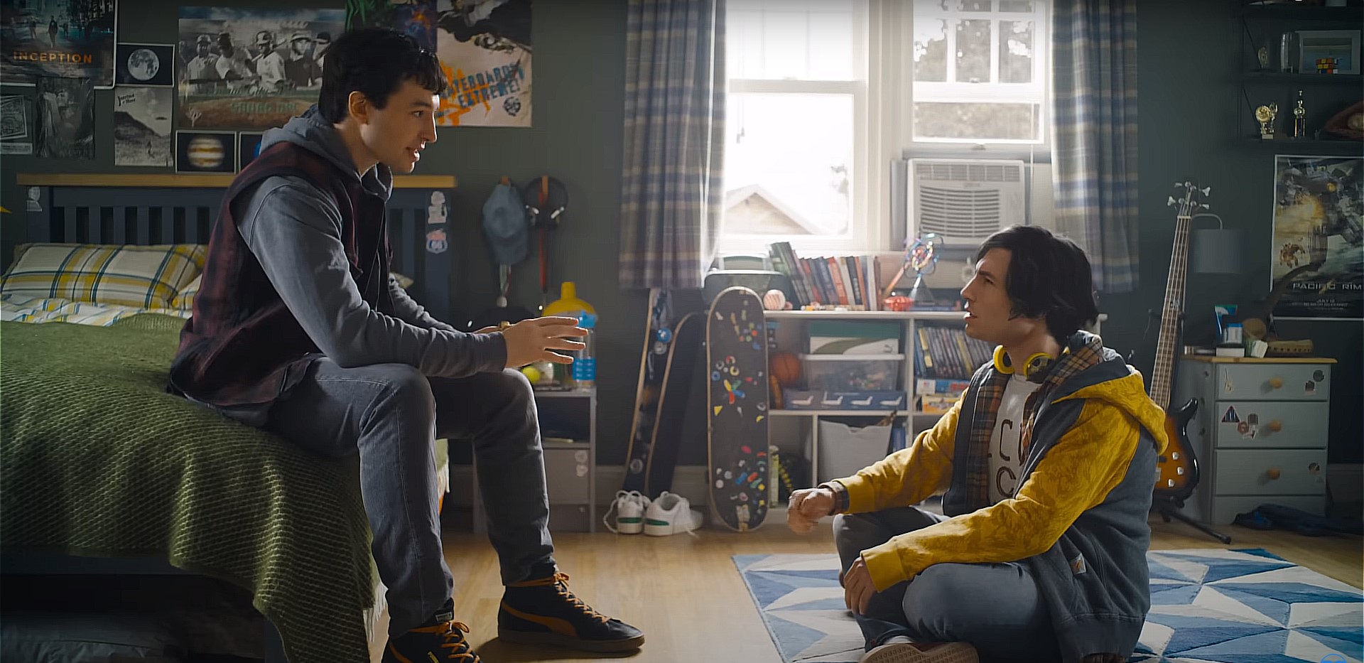 For a while, everything’s running full speed ahead. Miller’s comic timing comes in especially handy through the setup of Barry’s job at RESEARCH CENTER (possibly down in the Seinfeld district) and the clumsy intro of this film’s barely included Iris West (Kiersey Clemons from Hearts Beat Loud), then throttles into hyperdrive when his series of dunder-headed mistakes drop him in his own past at age 18, when Young Barry is a mere half-hour away from the secret origin that he’s in danger of missing. The aftermath of Young Barry’s life-changing moment and his Day One learning curve set up a hilarious Rube Goldberg sequence, one of many precision-timed laughs to come.