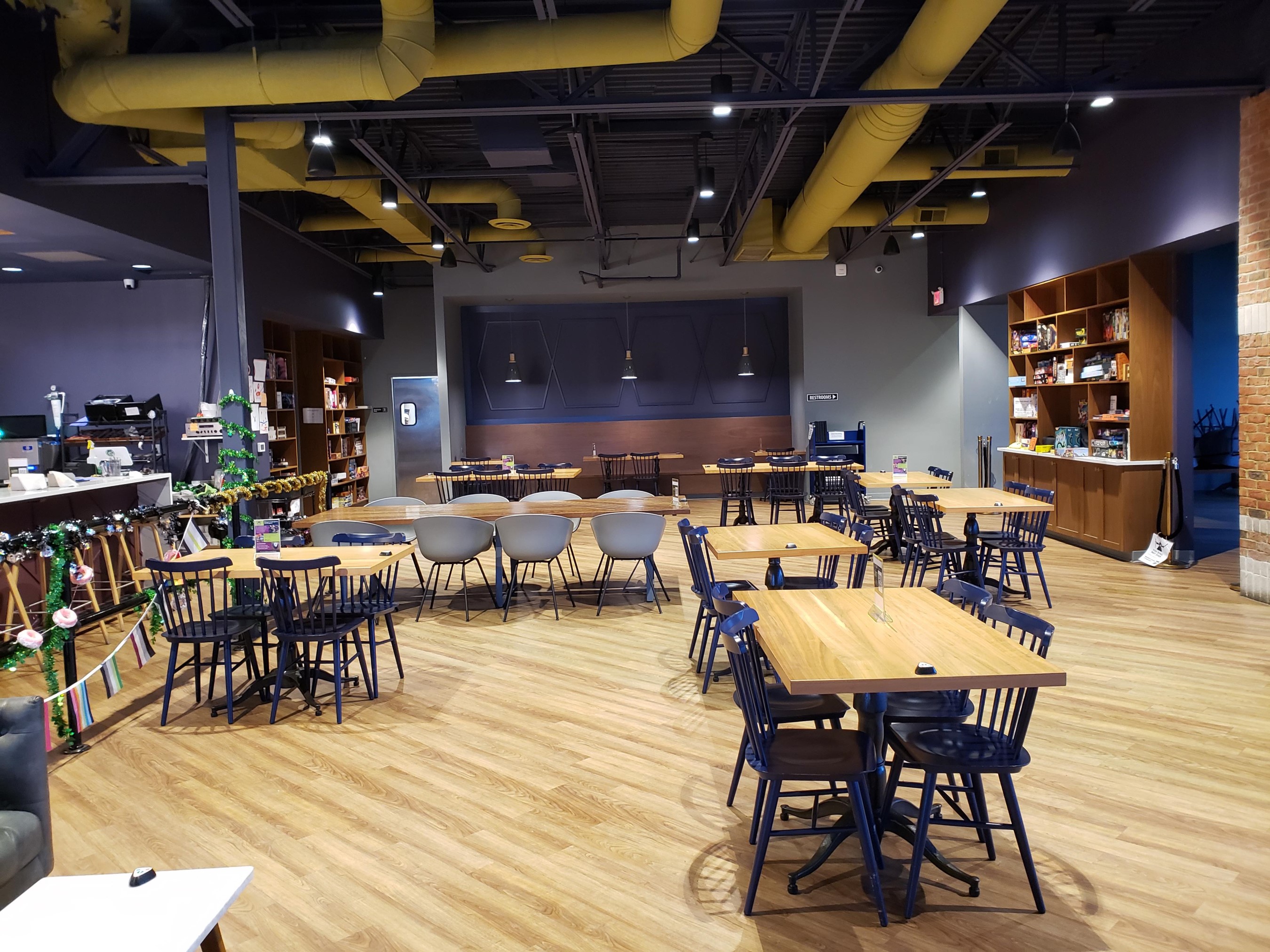 Our previous visit during the pandemic was necessarily compromised. Staff and customers alike wore masks. The shelves filled with board games that had once been available for free borrowing were wrapped in nets to keep anyone from touching them and potentially contaminating them or subsequent players. The tables were mostly empty, as was the style at the time in literally every restaurant in America. But the donuts were great and the concept was intriguing.