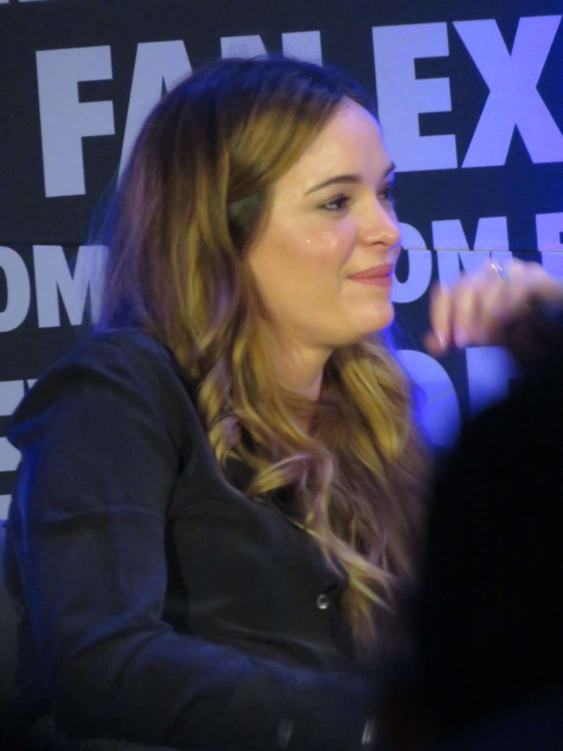 As the end of the panel drew near, and then passed by, and as the next event’s moderator congenially loped toward center stage in extreme slo-mo mode, they kicked off a Lightning Round (Flash pun intended?) and vowed to get through every last fan in line at the microphones, whether answered with a short-‘n’-snappy retort or yet another “VOLDEMORT!” abstention. Somehow the final seconds led to Cavanaugh and Valdes running laps around the stage and singing one last wordless ditty. But through brevity and wit they got to everyone.