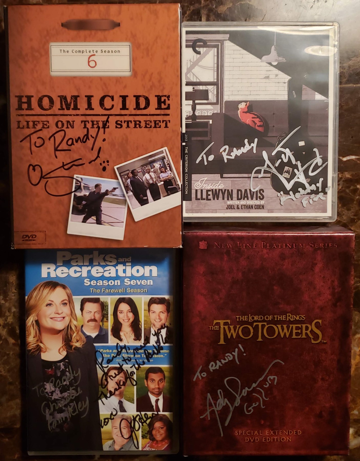 The latest additions to my autograph collection. I love that Steve Burns added a Blue paw print to my Homicide set.