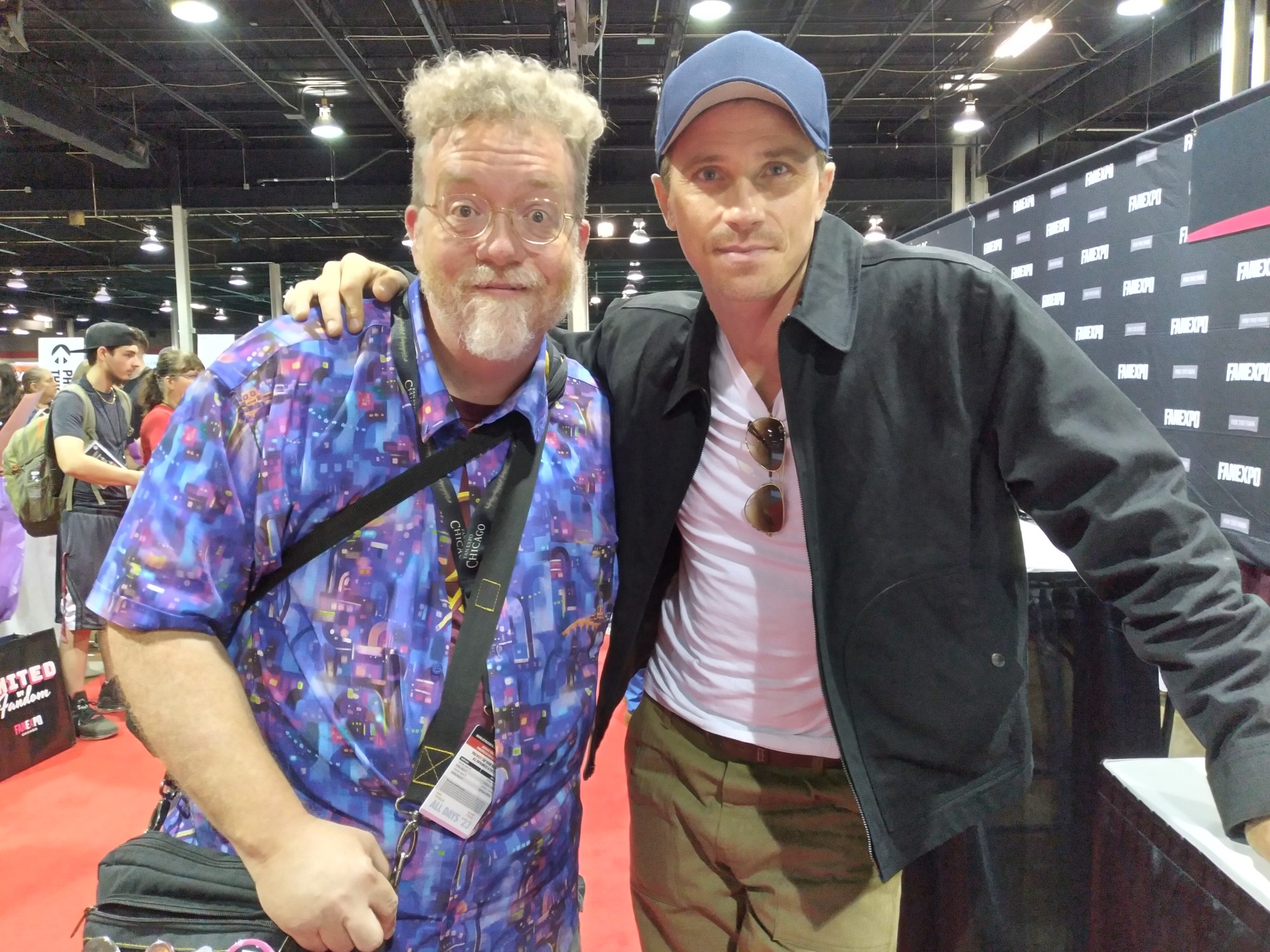 The trio’s antics were so energetic that I allowed myself high expectations for our last appointment of the day: a photo op with Cavanaugh himself. I’d already had the honors with Panabaker six years ago and with Valdes last May, but this was our first time at a show with Cavanaugh on the roster. Based on their panel, I was surely expecting nothing less than the Best Jazz-Hands Photo of the Year.