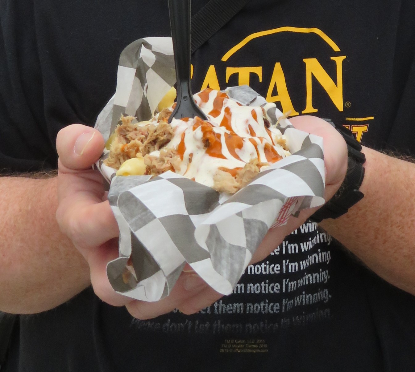 5. Buffalo Pork-‘n’-Mac. After I posted the Taste of the Fair rundown on Facebook the very day it was released, I soon learned I was obligated to try this dish because the owner of the Nitro Hog BBQ stand is the brother of one of my high school classmates. I don’t recall us ever having a conversation in any of the several classes we shared, but I don’t make the High School Alumni Facebook rules. I’m glad I followed them, though: I might’ve missed out on a hearty combination of perfectly cheesed-up mac-‘n’-cheese, Flavortown-ready pulled pork, spicy Buffalo sauce, and ranch dressing. It could’ve ranked even higher if not for the fierce competition and for my own personal Buffalo stance, by which I mean, had there been the option, I would’ve gone with Bleu cheese over ranch.