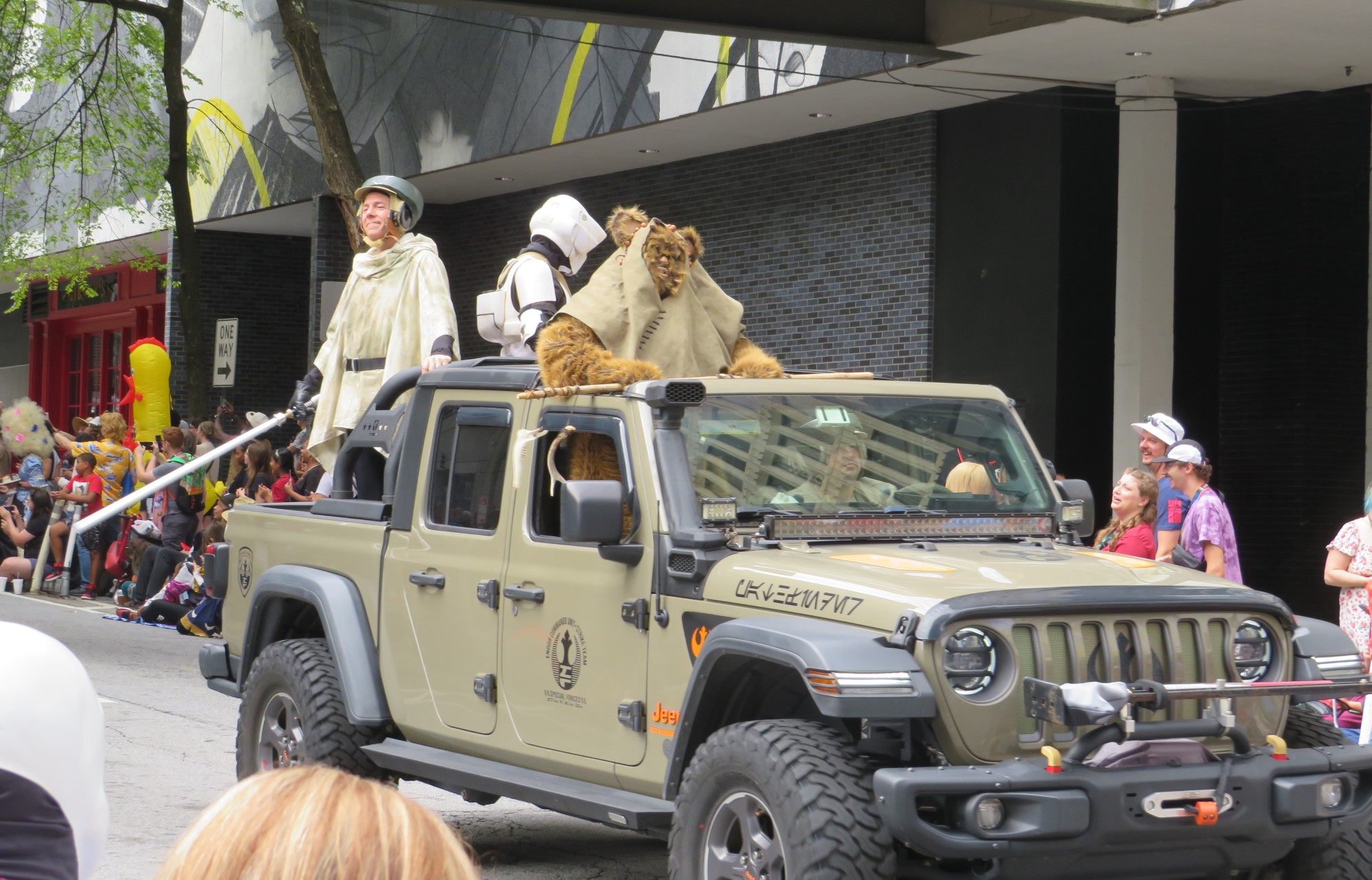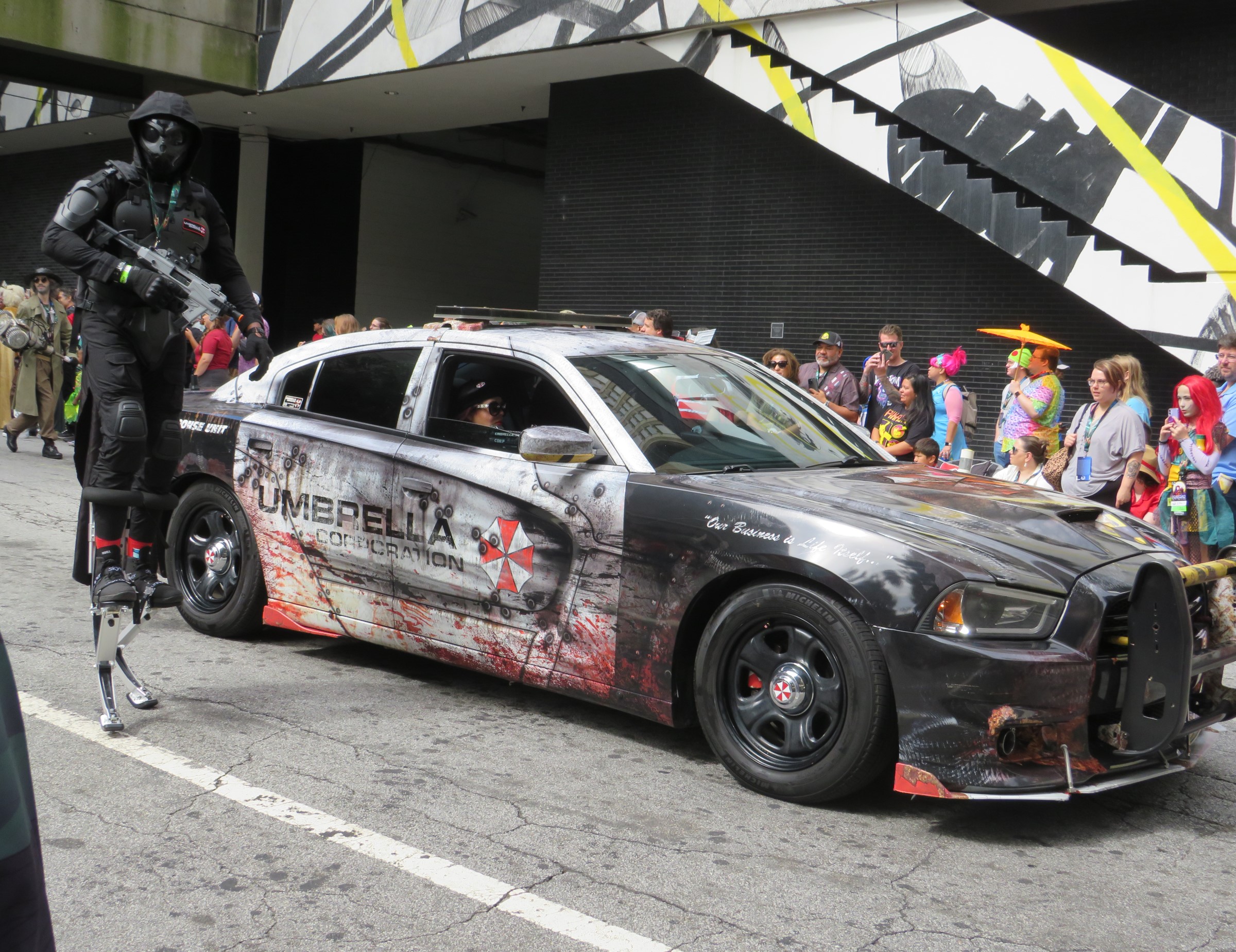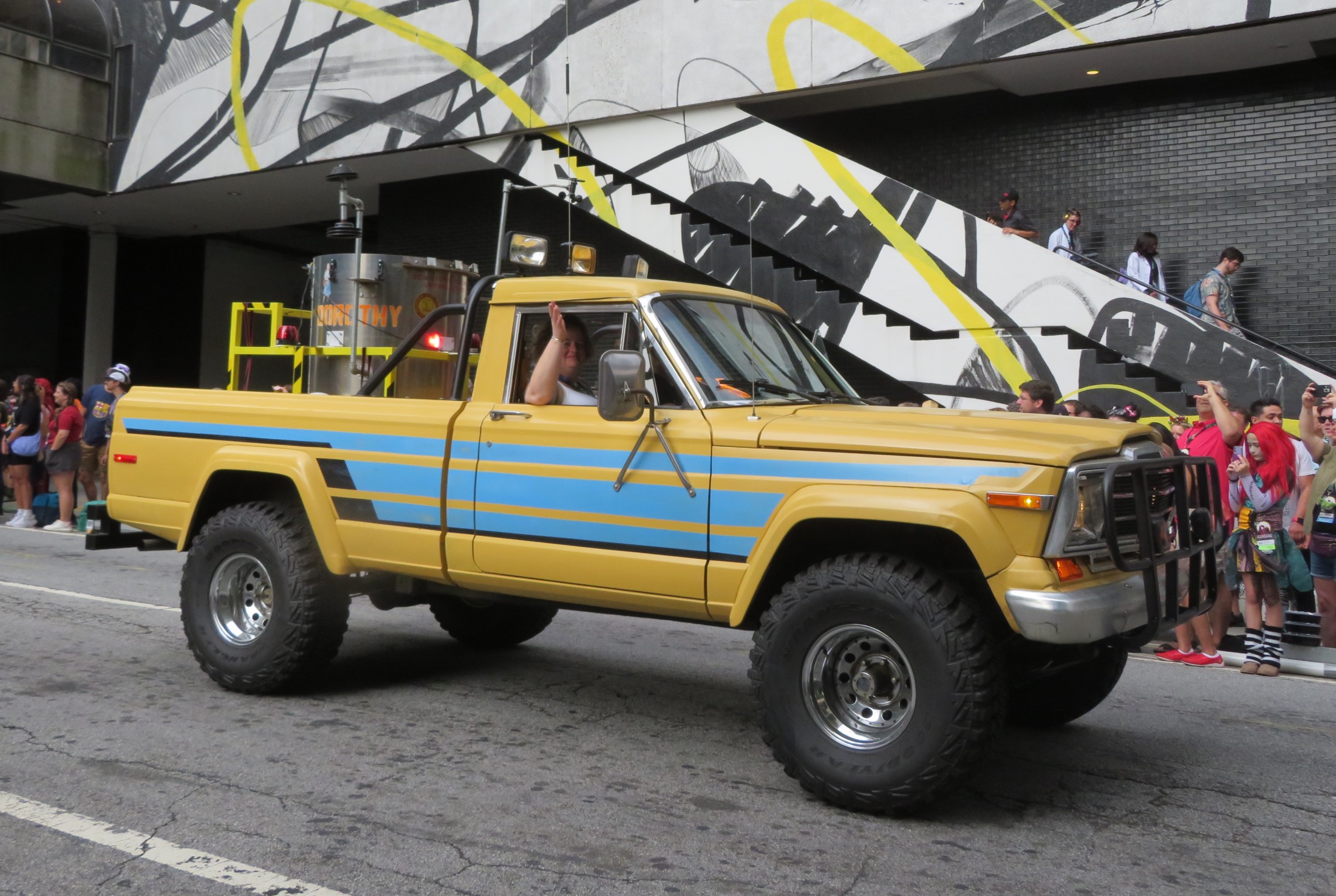 Every parade, whether geek-themed or otherwise, lives and thrives on its vehicle assortment. An array of talented fans created replicas of cars from their favorite universes or personalized their rides to exhibit their fandoms, like how ’70s dudes used to paint barbarians and Valkyries on their vans, except several of these were cooler. Some cosplayers fetched rides aboard otherwise normal transports, all of which had wheels and therefore qualified for inclusion here. Enjoy again!