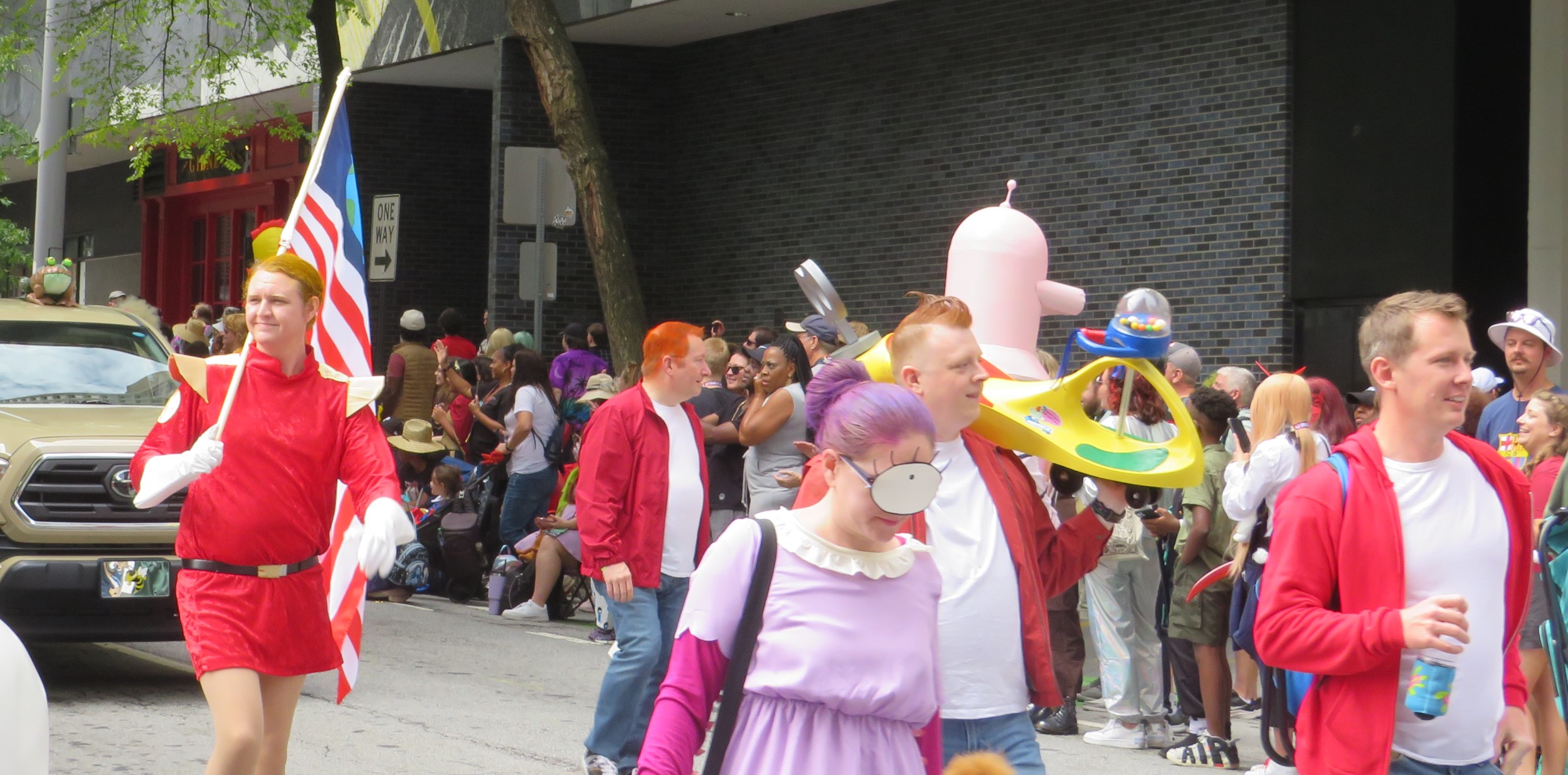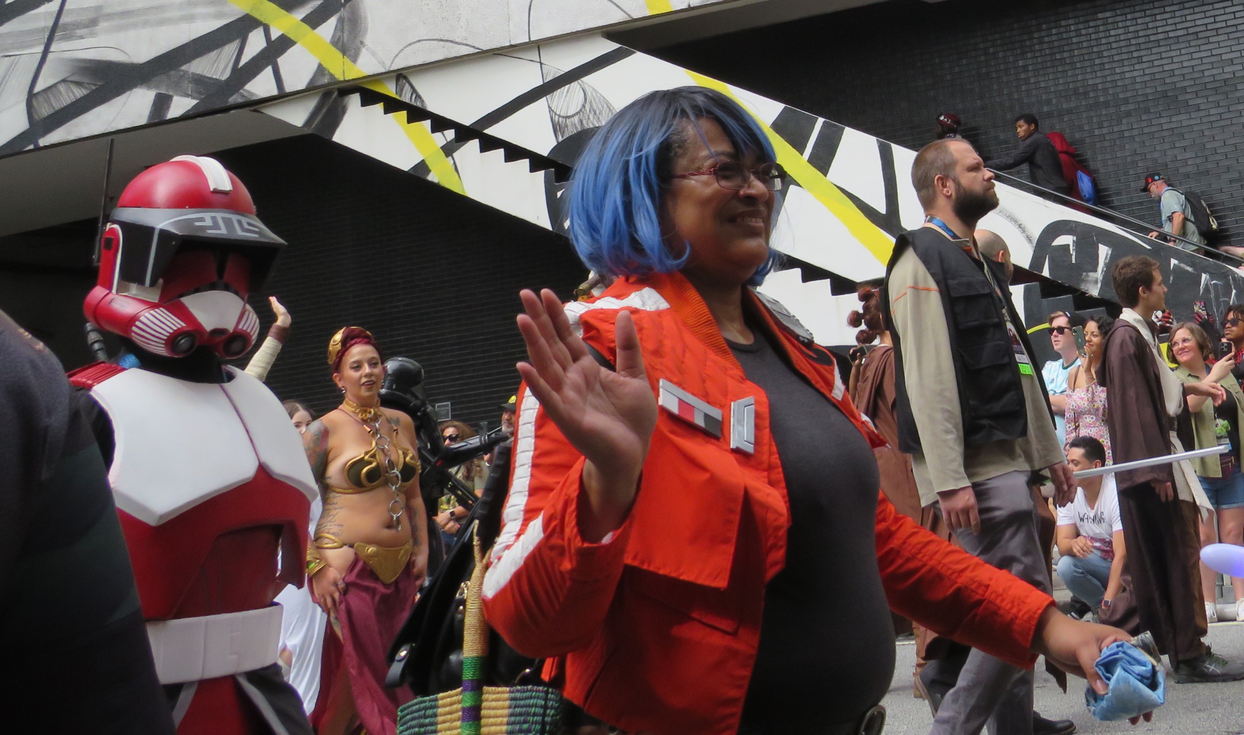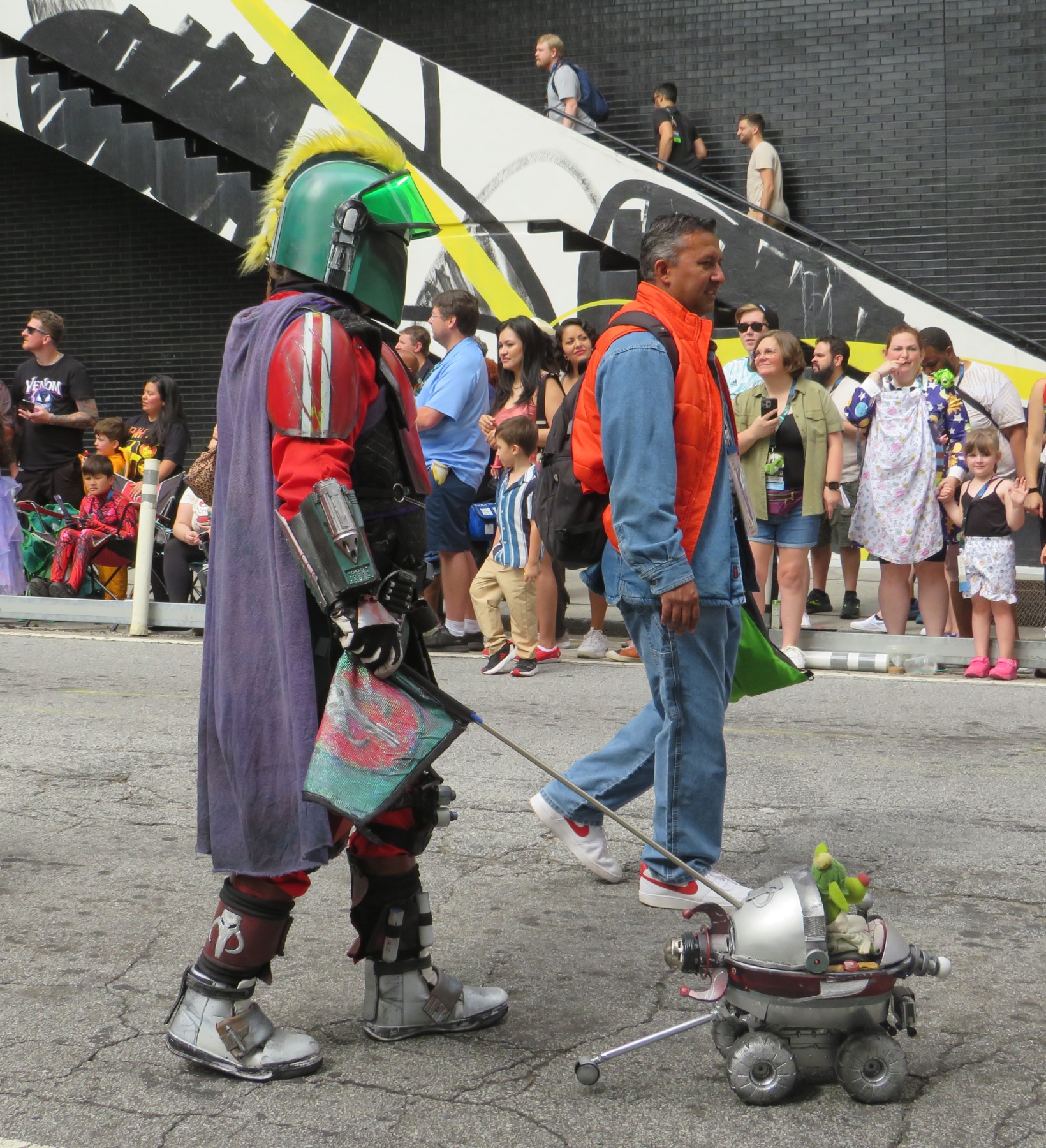 Hi-diddly-ho! It’s our fourth gallery from D*C’s annual Saturday morning cosplay parade, always one of our favorite events. The starter exhortations in Part 5 still apply here: if you recognize any characters we didn’t, by all means please let us know! We like meeting new faces, broadening our knowledge, correcting errors, and bridging the gaps in our aging memories where those character names used to be. Between us we took over 600 photos and couldn’t possibly have known everyone. Related note: if you or someone you know was in the parade and you’re hoping for shots of them, pretty-please let us know! We’re taking requests! We’ll be happy to search our files and post ’em if we got ’em. You might come away disappointed, or you might not!