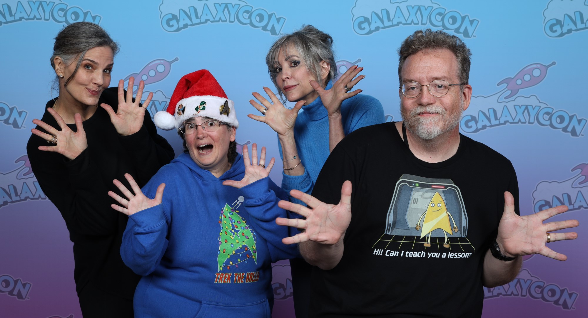 Us doing jazz hands with Terry Farrell and Nana Visitor, who barely fit into the pic because we've gained weight. Again.