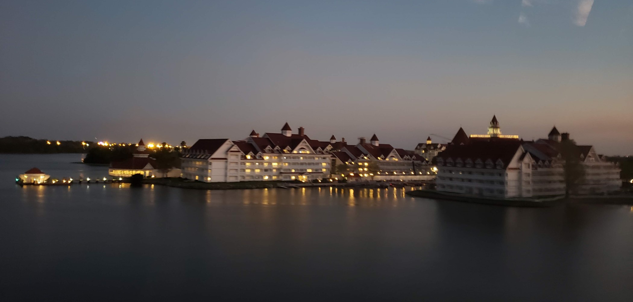 A full lap took slightly over ten minutes. Back at the Grand Floridian, I wandered a bit more as nightfall continued and I worried not one bit about safety. I took it on faith they had people for that. I found the pier where guests could take boats to the Magic Kingdom and back again, but it was closed. I settled for taking the lead photo and went on my way before alligators or snakes could pin down my location.