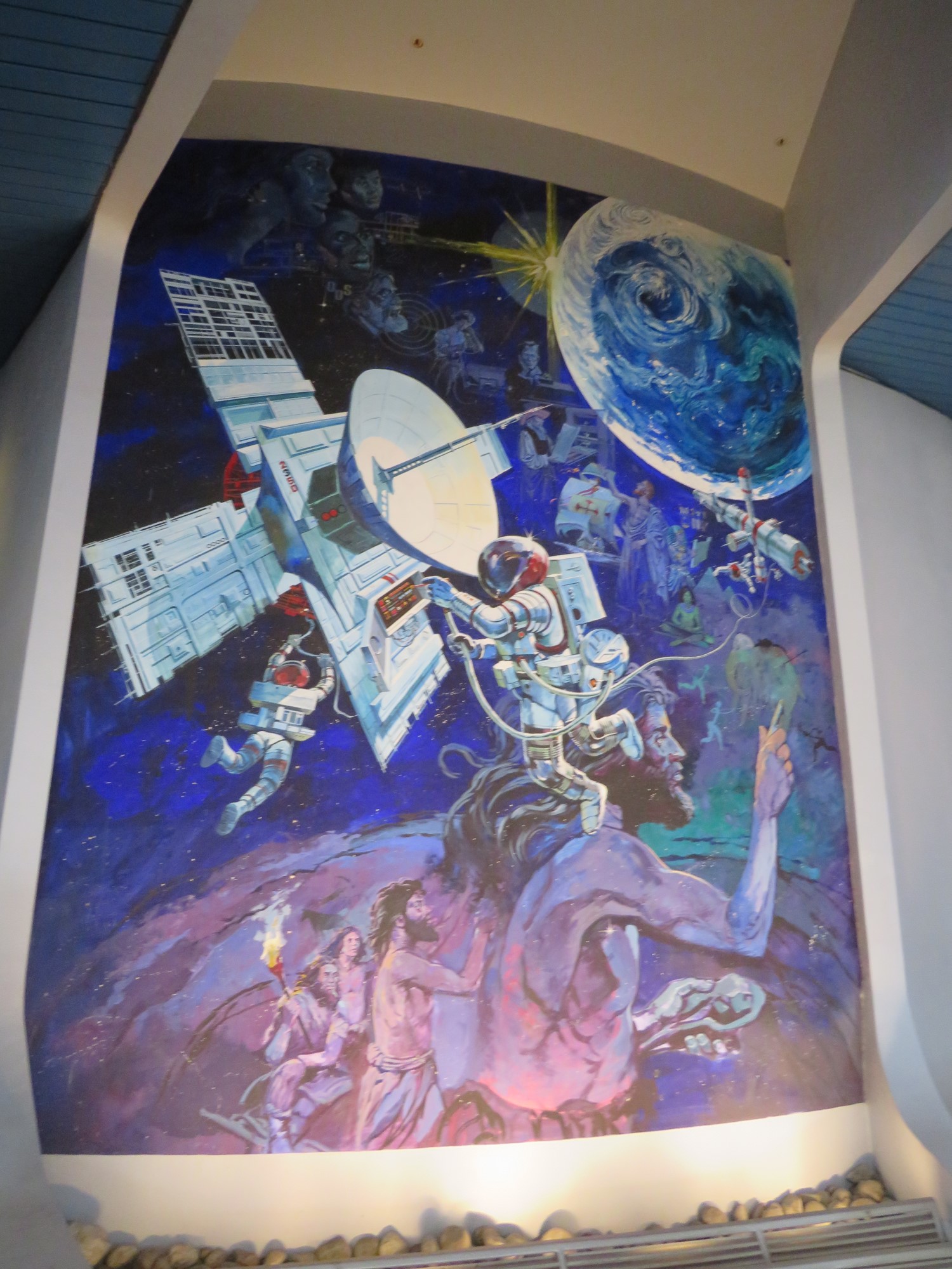 The ride should’ve taken about 15 minutes, give or take a minute, but dragged a little because our Omnimover stopped suddenly while going backwards downhill, and sat there for a few minutes of darkness that were accompanied by neither sights nor sounds and did not feel scheduled. After some time we moved on, completed our faux-time-travel journey and were then herded into an interactive kids’ science museum as an epilogue.