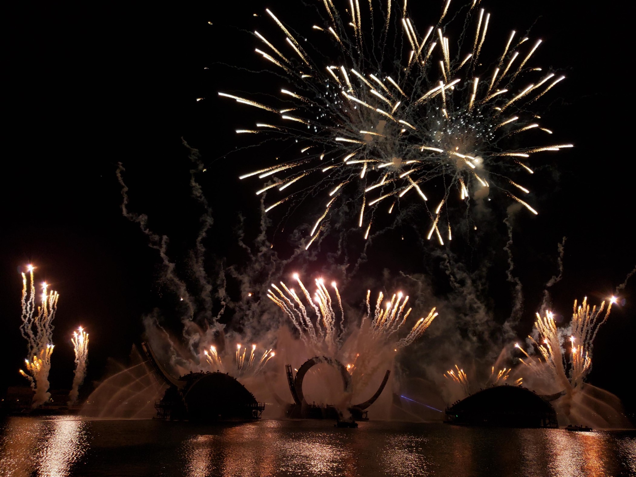 Or if you’d prefer, I could revert to stale basics. “Here’s a thing. Here’s a firework. Another firework. Here’s a light. Here’s water. Here’s more light.” Et cetera.