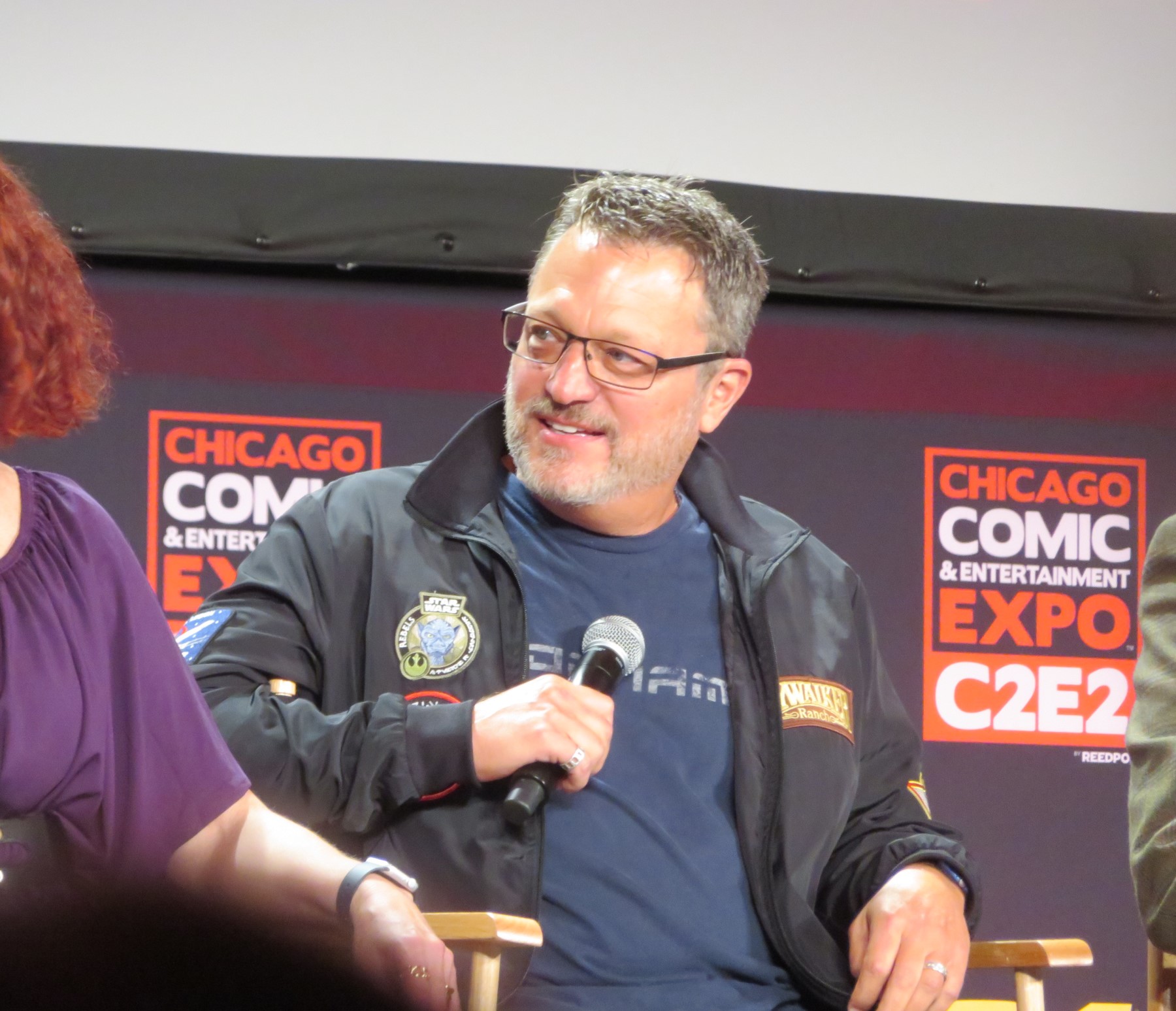 Beyond the photo ops, we also attended exactly one (1) panel per day. I’d have loved to sit through more (or had reasons to take more breaks from walking in general, really), but C2E2’s panel lineup fell shockingly short of our expectations. Some 95% of their comics panels were how-to classes for wannabe comics creators, which hasn’t applied to me since college. Several high-profile actors’ panels were on Sunday, which we couldn’t stick around to see due to Sunday morning adulting commitments. The overall schedule was much thinner than we’ve come to expect from this show. Nevertheless, we availed ourselves where we could.