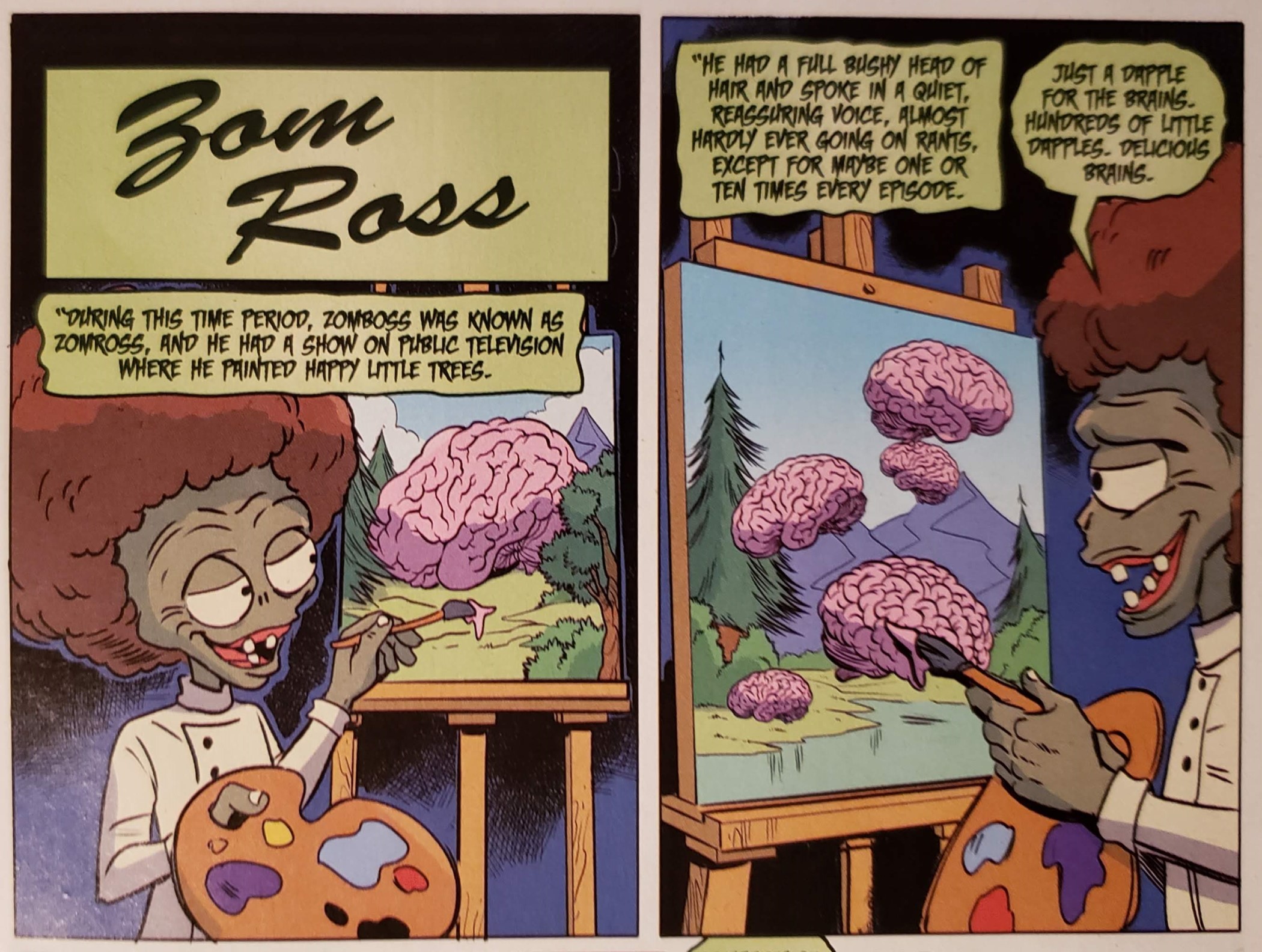 9. Star Wars: Young Jedi Adventures (Dark Horse Comics) – The Disney+ series for tiny kids also has comics! The first two pages expect grade-schoolers to grasp a fair amount of exposition to set up its tale of two Jedi younglings who both understand Basic but can’t actually speak it (a persistent artifice in this galaxy), and can neither understand nor speak each other’s native tongues, yet they accomplish teamwork thanks to, er, the Force hivemind or kindergarteners’ keen detective skills. I’m sure the target demo won’t overthink it and could use a lesson in cooperation anyway. The backup tale returns to FCBD stalwarts Plants vs. Zombies; this time the plants are Pokemon knockoffs at best and their human pals serve a single joke, while the zombies win center stage with multiple versions of the secret origin of their leader Zomboss. Silly rhyming gags add up to a shrewd li’l media-manipulation satire and real-world politicians prone to rewriting their backstories every ten minutes. I’ve read no PvZ outside FCBD, but within that limited scope, this is their best bit yet.