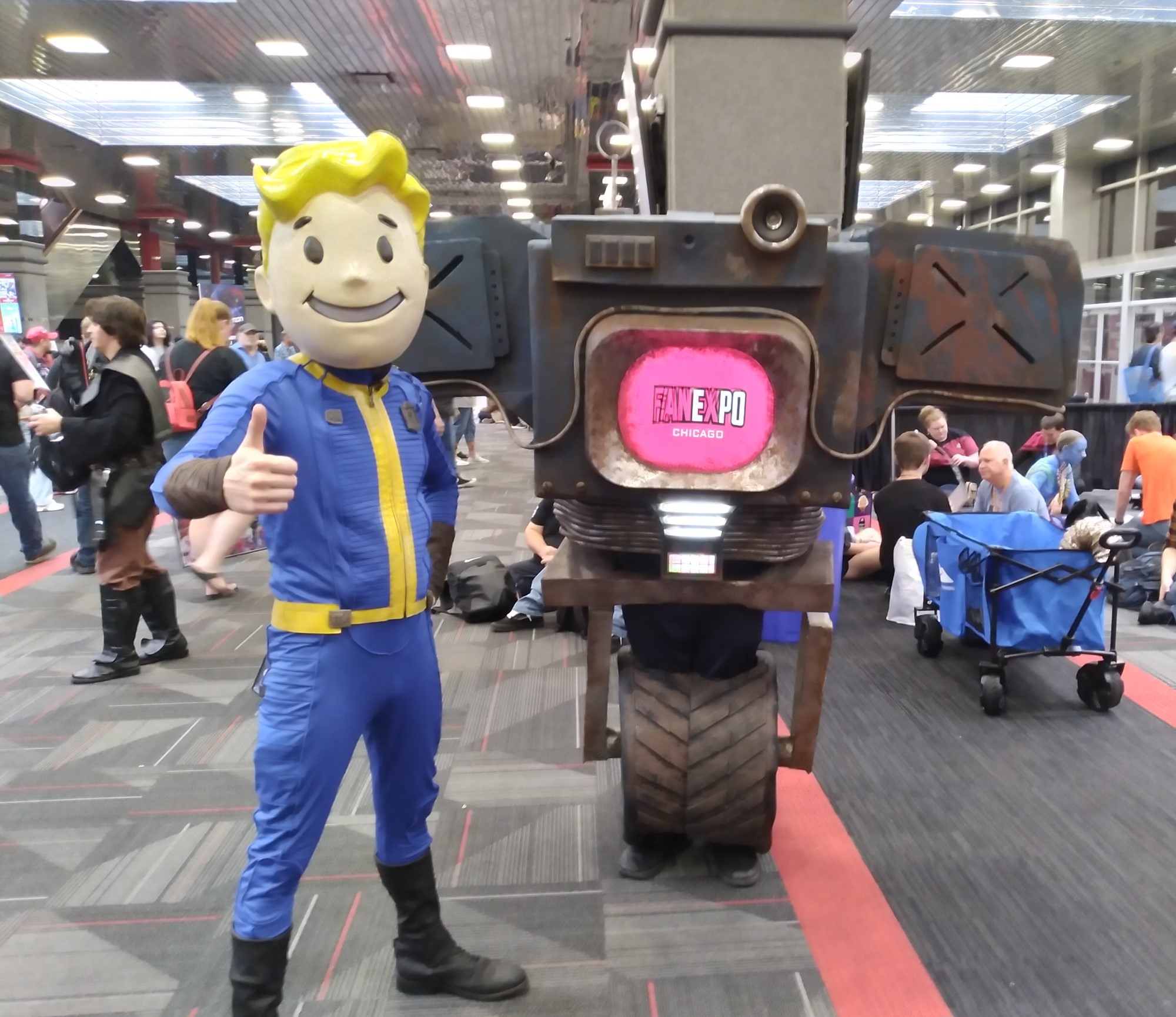 Apropos of one of the show’s guests, a Fallout-fest with possibly the same Vault Boy and Yes Man we saw last spring at C2E2, but I like how they’ve changed the TV channel.