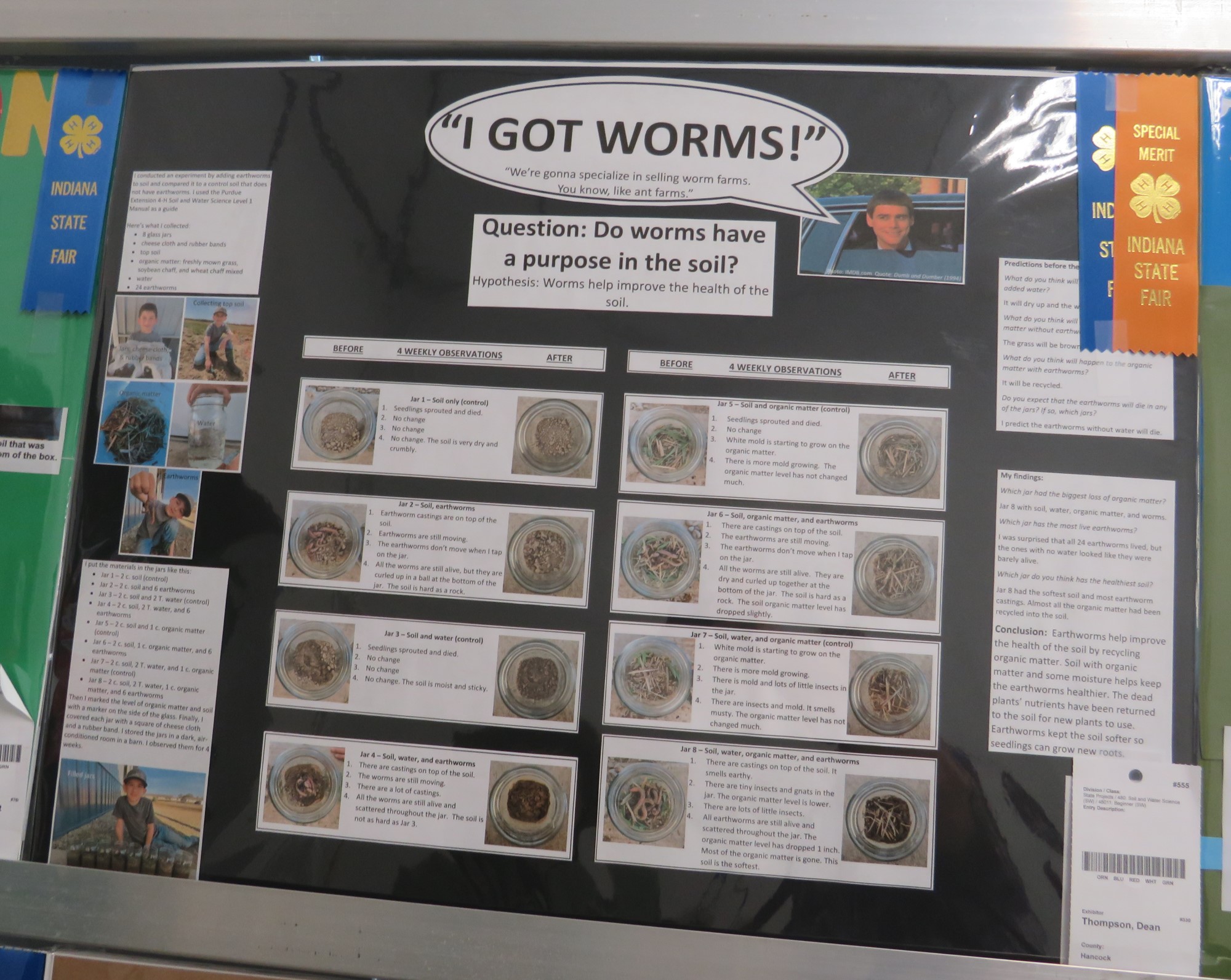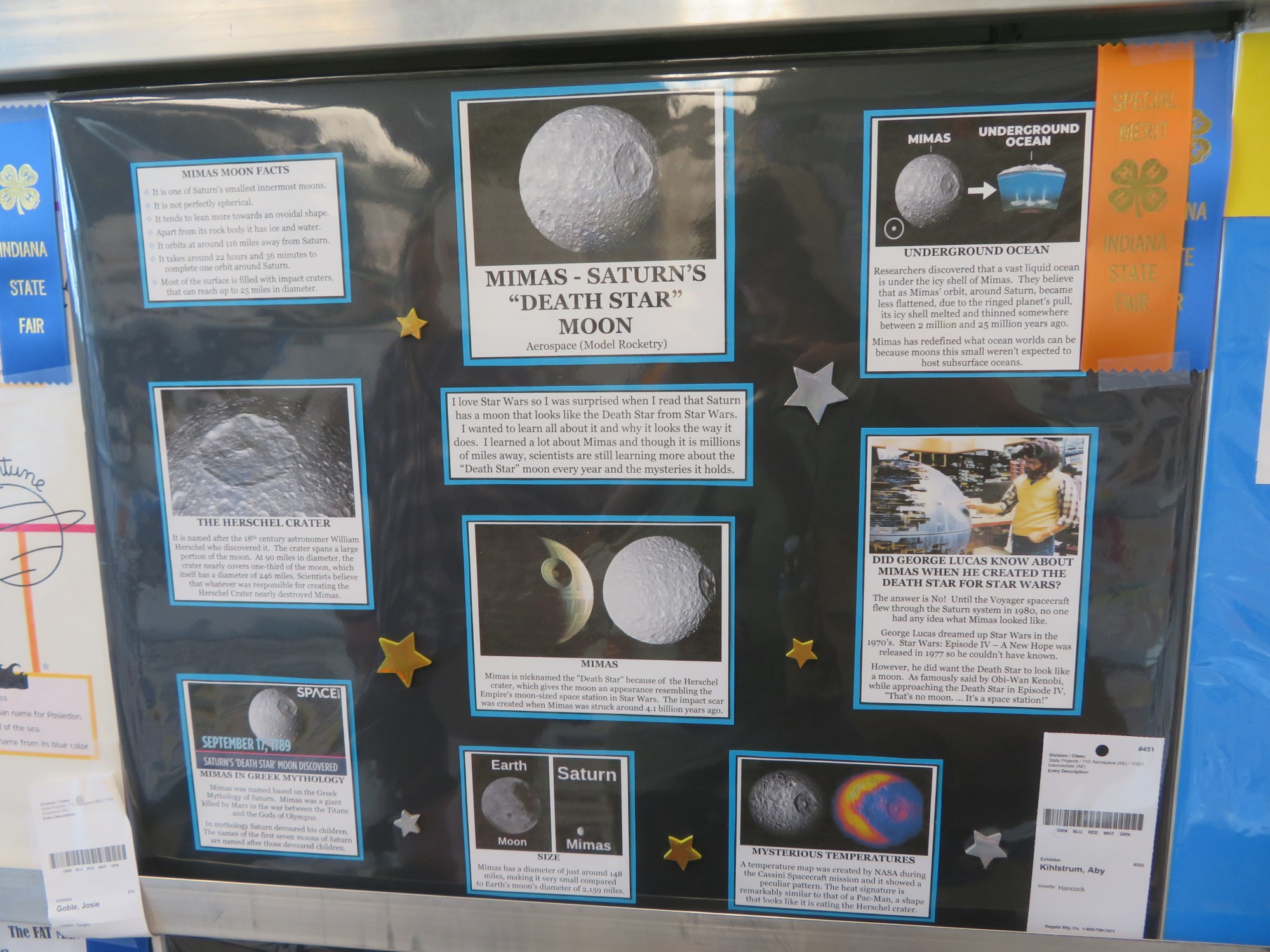 Over at the 4-H Building, beyond the Lego sculptures and other arts, I also like to peruse the science-poster competitions. Those works can sometimes be dry and humorless in accordance with the strict rules for their specific areas of interest, but I’ve made an annual game of looking for glimmers of creativity and inspiration that stick out like diamonds in the rough, whether their titles be pop-culture references or Dad-jokes. I’ll take what I can get.